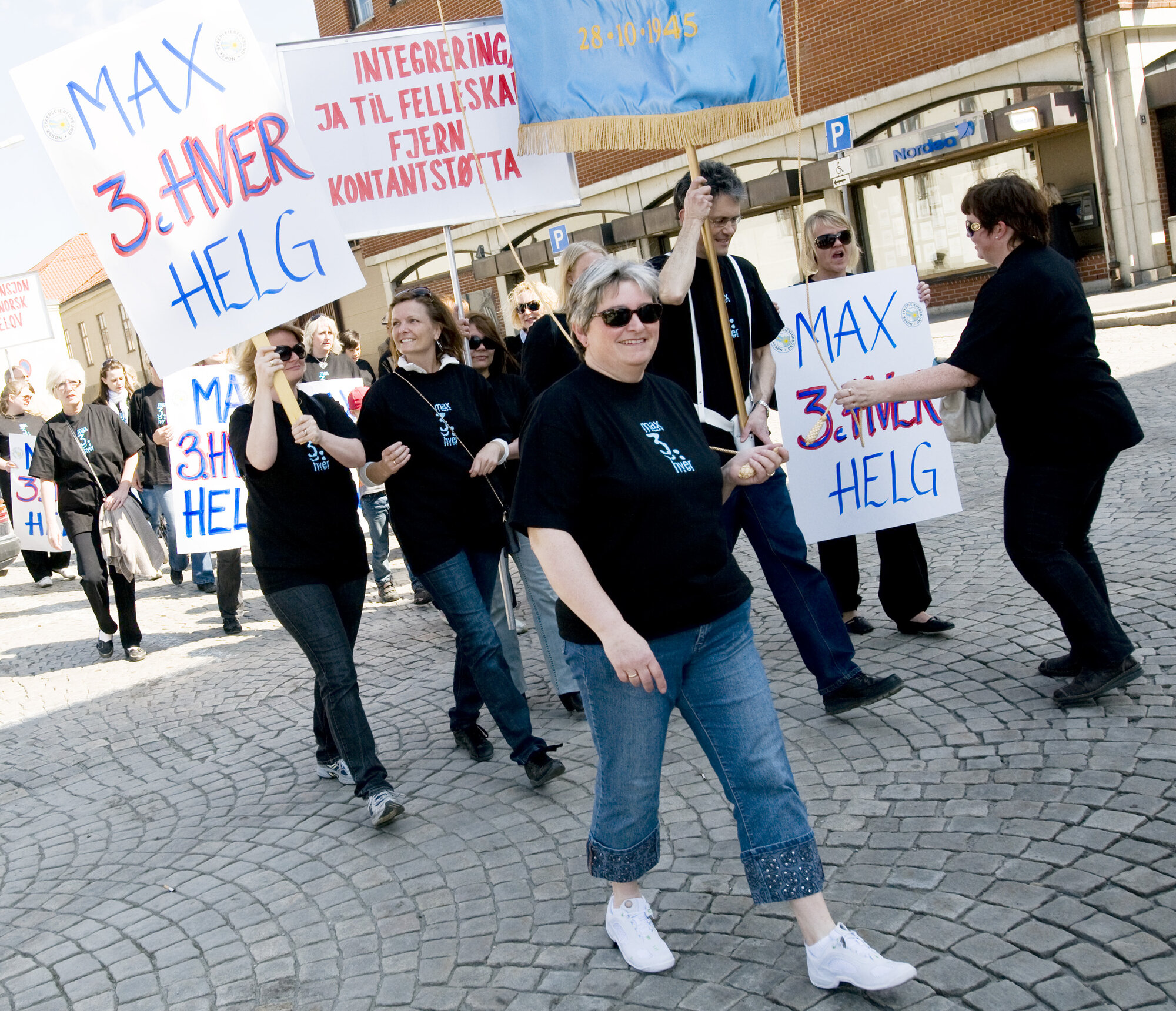 Bak parolen «Nei til hinkehelger» gikk sykepleiere, hjelpepleiere og andre kommunalt ansatte helsearbeidere.