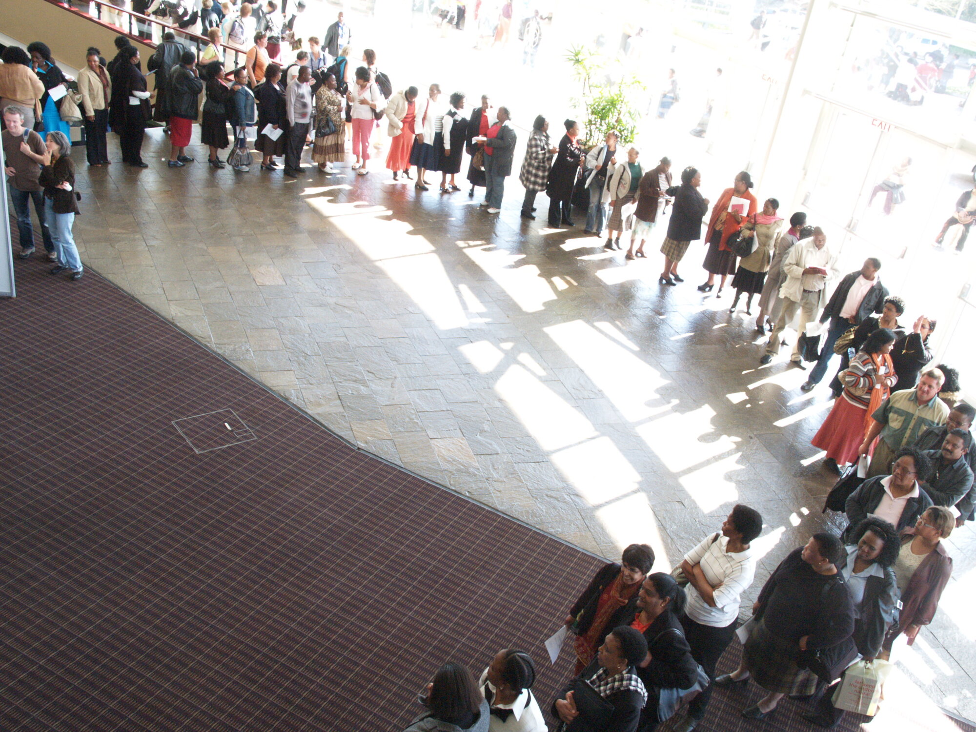 Keshnee Deolall bor en times kjøretur utenfor Durban. Hun har stått i kø i 15 minutter, men det er langt frem til skranken og flere hundre forann i køen.