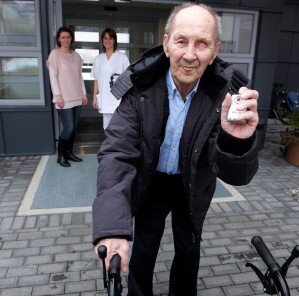 – Det er bare ålreit. Også har jeg jo med Mercedesen når jeg er ute og går, humrer han, og klapper på rullatoren.
