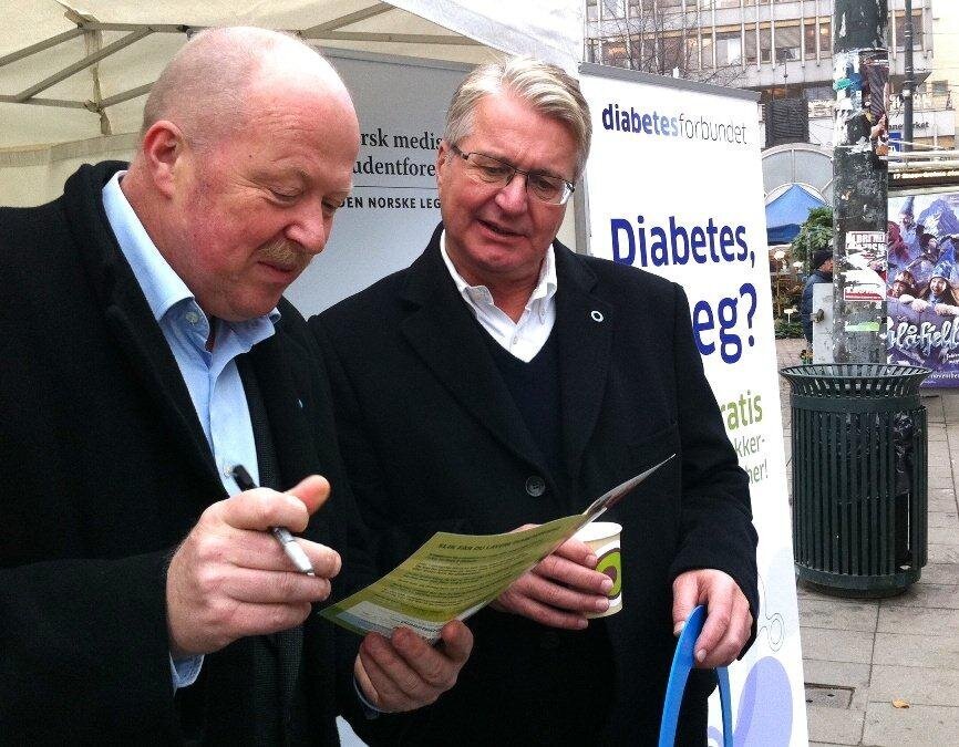 I anledning Verdens diabetesdag besøkte Stang Diabetesforbundets stand på Stortorget i Oslo. Her stod medisinerstudenter klare til å stikke forbipasserende og kjapt avlese deres blodsukkernivå.