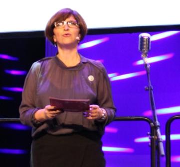 GRATULERER: NSFs Nestleder Solveig Kopperstad Bratseth gratilerer vinnerne. F.v: Gerete Skorpen Iversen, Kari Hauff og Åse Christiansen.