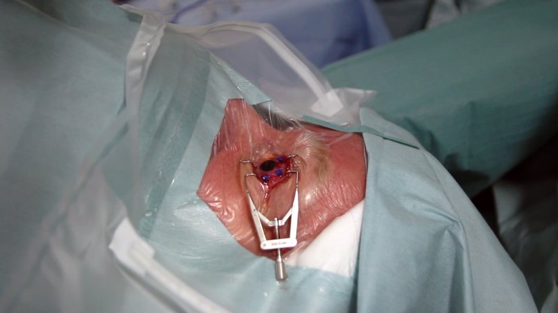– Au, sier pasienten når bedøvelsen injiseres gjennom huden rett under øyet. Væsken