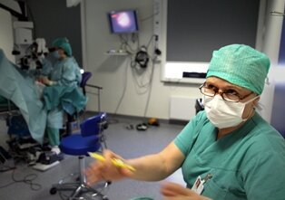 Se video fra Øyeavdelingen ved Oslo universitetssykehus: To sykepleiere og en lege samarbeider for å redde så mye som mulig av pasientens syn.