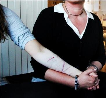Hjemme i stua tar hun et fast tak i hånda til sin 18 år gamle datter. Datterens arm er full av store og små arr, på kryss og tvers.