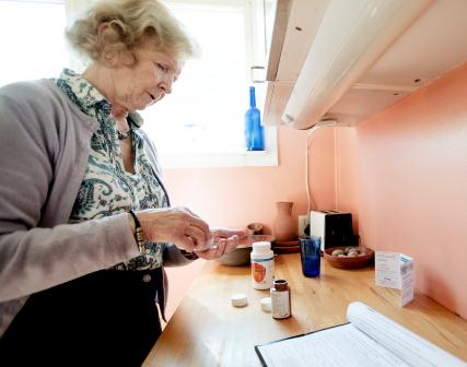 Liv Clemens Christensen (80) står ved kjøkkenbenken og rister en avlang pille ut av en plastboks. Hun svelger ned med et glass vann, slik hun har gjort hver lørdag de fire siste årene. Hun er med i fase tre av en studie som tester et nytt legemiddel mot beinskjørhet. I tillegg tar hun to små D-vitaminpiller og en kalsiumpille. Foran henne ligger skjemaet hun må krysse av på etter at alt er gjort.