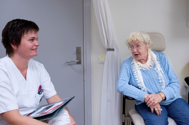 Det er prepoliklinisk dag ved ortopedisk avdeling ved Sykehuset Levanger i Nord-Trøndelag. Else-Marie Hansen, født i 1945, er en av tre pasienter som i dag får møte ortoped, fysioterapeut og sykepleier. De får viktig informasjon før de skal opereres innen to uker.