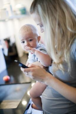 Mobiltelefonen er fristende, selv for nybakte mødre. Beskjeden fra helsesøstre i Akershus er klar: Begrens mobilbruken på helsestasjonen!