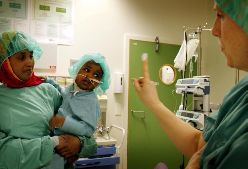 Grytidlig morgenen etter er Maida klar. Hun får på seg de rosa skoene og løper i vei. Nede på operasjonsrommet er alt klart, men de tar seg likevel tid til å snakke og tøyse litt med den lille pasienten før alvoret setter inn. Mor får være på rommet til narkosen begynner å virke.