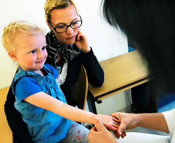 – Når Caroline blir eldre og hånden er utvokst, vil ikke huden i håndflaten ha samme elastisitet som uskadet hud. Det kan føre til at hun ikke kan strekke håndflaten og fingrene fullt ut. Da vil hun trenge en ny operasjon, sier fysioterapeuten.
