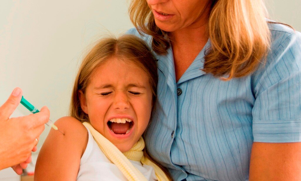 Bildet viser en jente som hyler fordi hun får sprøyte.