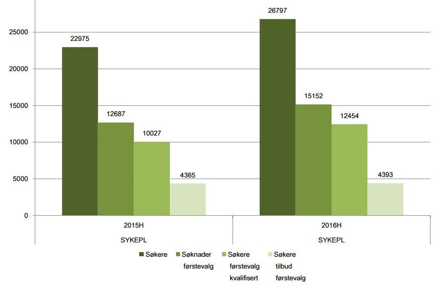 Over 15.000 hadde sykepleierutdanning som førsteønske.