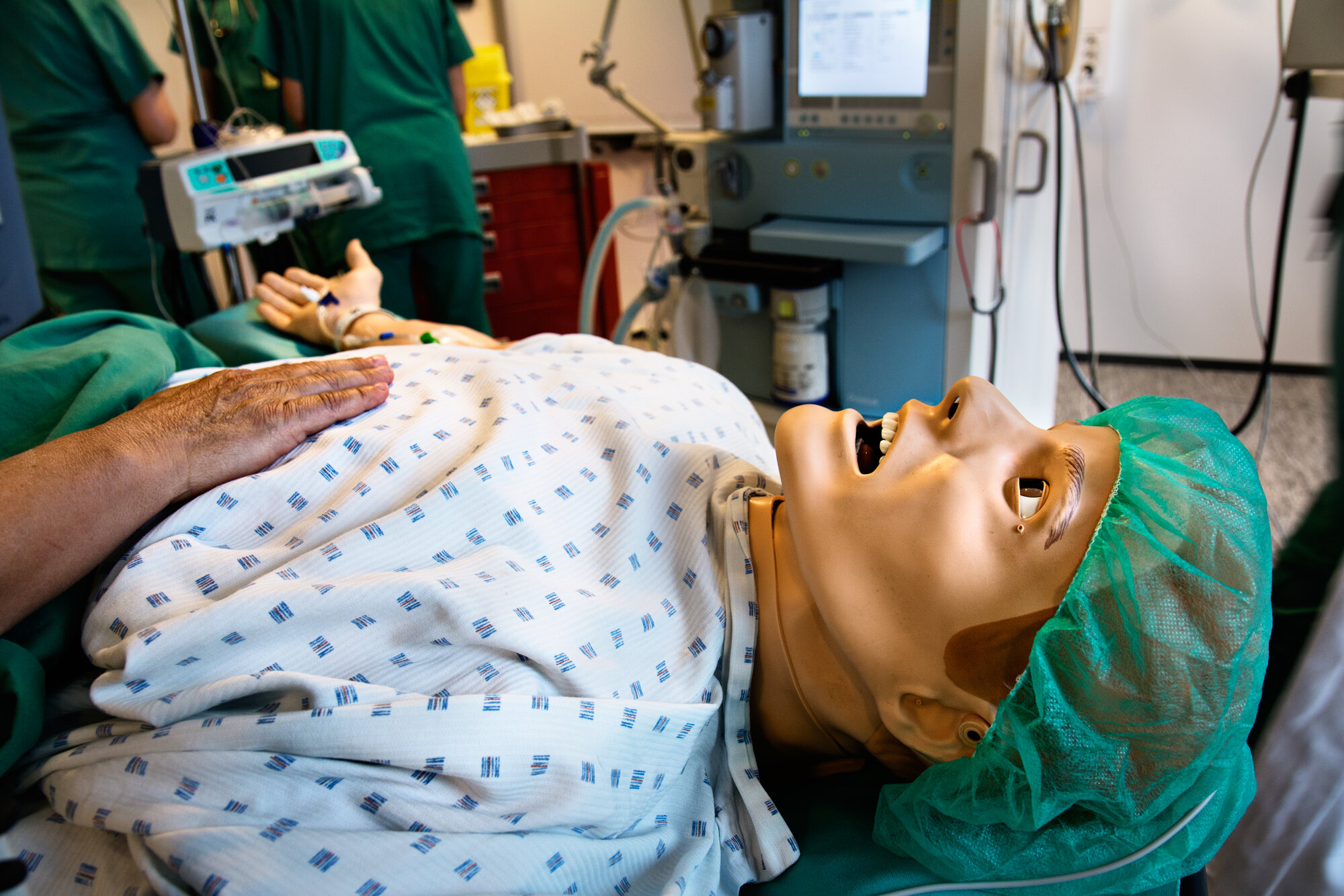 De trodde de skulle simulere en operasjon. I stedet handlet det om samarbeid når noe uventet skjer. Nå har intensivstudentene sørget for at Arne ligger høyt, for å sikre god drenasje.