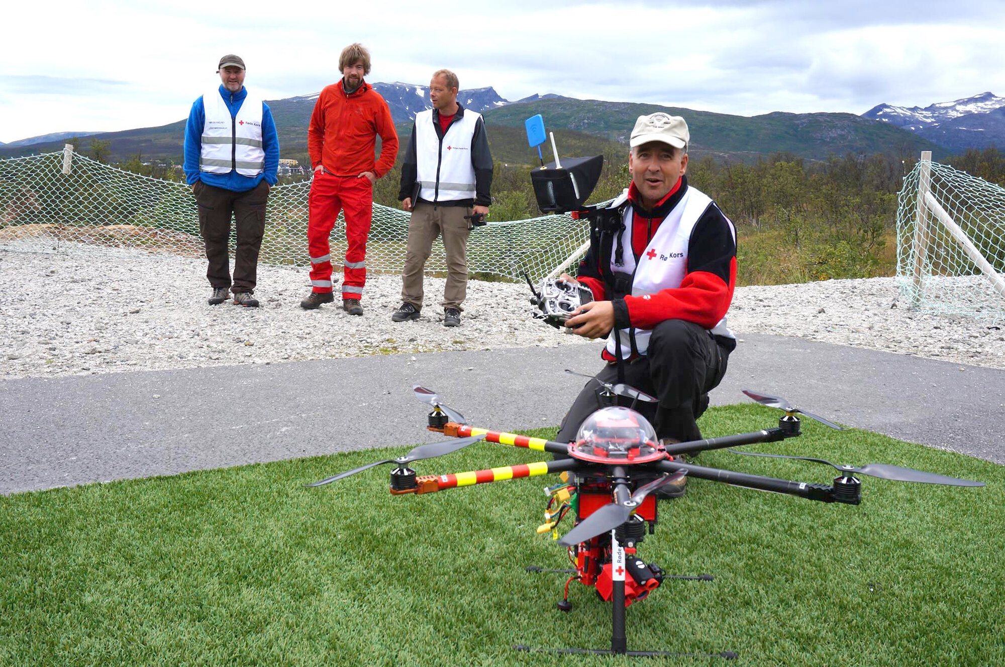 Martin Hansen Skjelvareid er medlem i Tromsø Røde Kors og forteller at de sender opp droner med tre typer kameraer for å lete; varmesøkende kameraer, et vanlig fargekamera og et med kraftig zoom. Lokallaget er pionerer i arbeidet, allerede i 2011 forsøkte de seg med kamera festet til et modellfly. Etter hvert har de blitt en liten gruppe som på eget initiativ har lært opp egne medlemmer i teknologien.