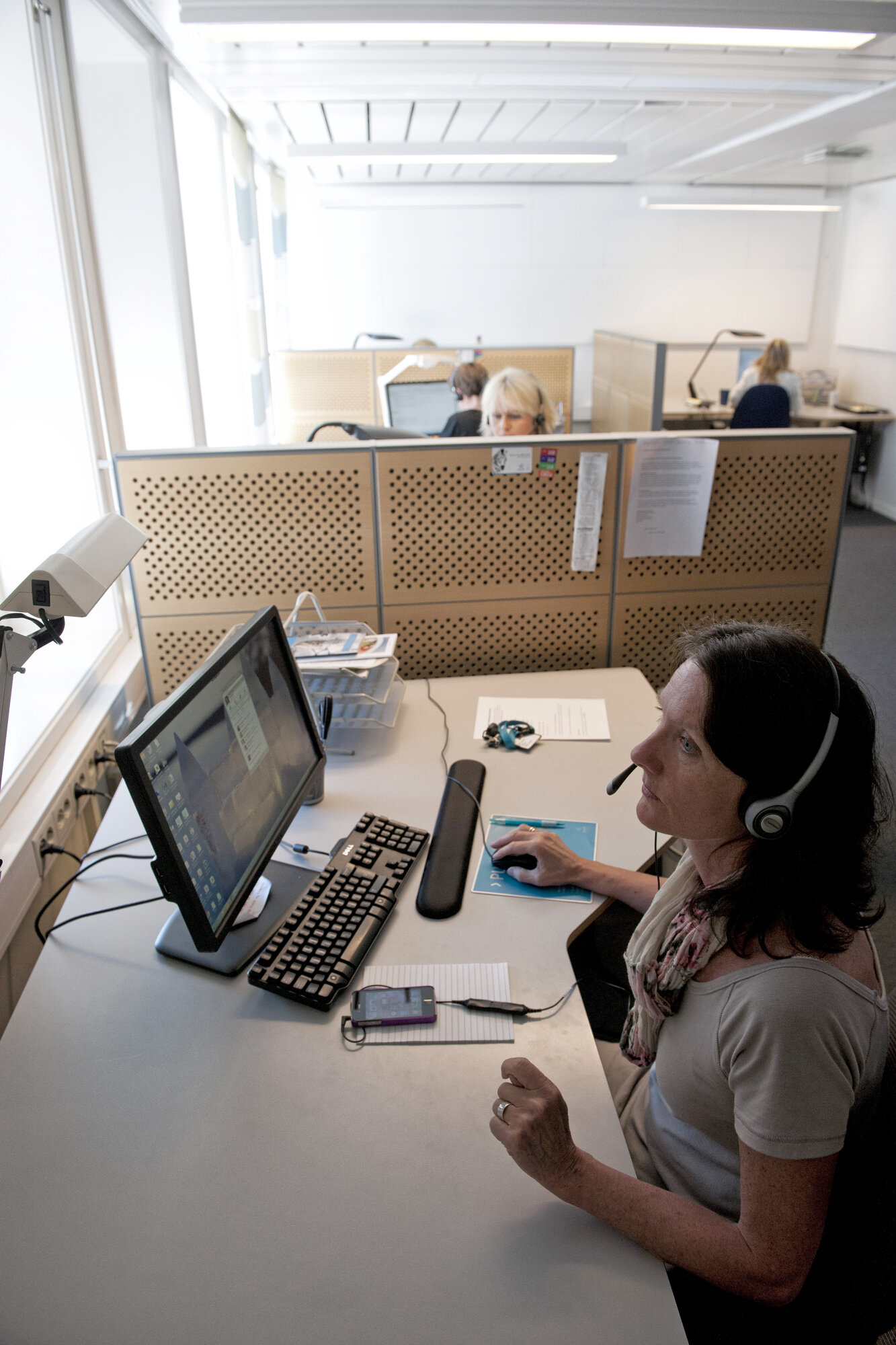 Kreftlinjen omfatter telefon, nettprat og e-mail. Alle vi som sitter her er sykepleiere. Vi er veldig forskjellige og utfyller hverandre på en fin måte. Vi samarbeider også med sosionomer og jurister fra rettighetstjenesten som kan svare på spørsmål om ytelser og rettigheter. I tillegg har vi ansvar for nettsidene og for å besvare spørsmål på Facebook.