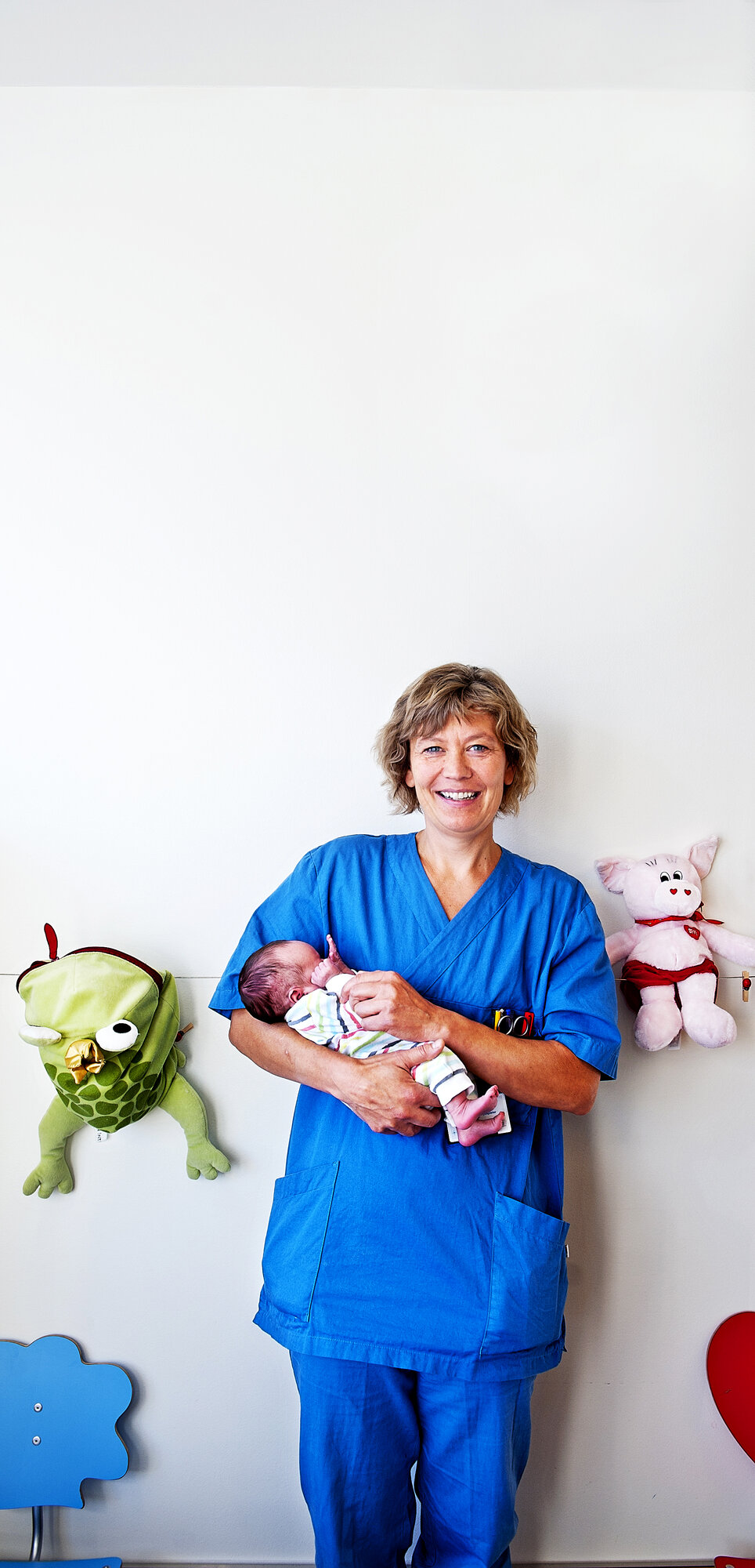 Jeg tar hånd om premature og syke nyfødte. St. Olavs Hospital har også spesialfunksjon for nyfødte med misdannelser i magen. Derfor har vi også nyfødte som for eksempel er født med åpen buk, lukket spiserør eller lukket endetarm.