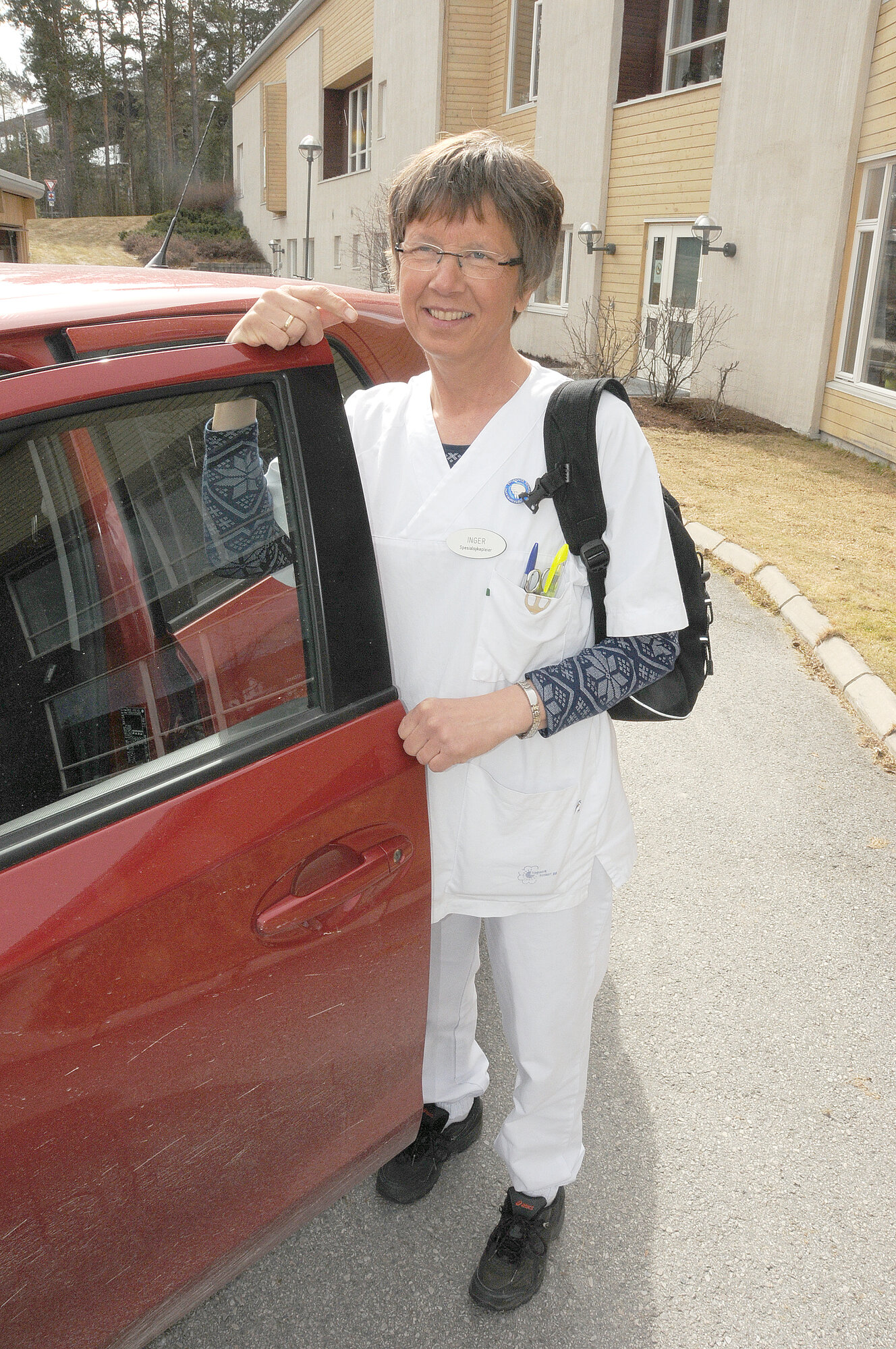 Ettersom jeg er kreftsykepleier, blir jeg prioritert til kreftpasienter i kommunen eller til andre kronisk syke pasienter med store hjelpebehov. Jeg tok videreutdanning i kreftsykepleie i 2000. Det ga meg en ny piff som sykepleier. Jeg lærte mer om refleksjon og bruk av forskning, og forsto mitt eget fag og systemet jeg jobber innenfor bedre. Det er viktig at vi sykepleiere setter av tid til å dokumentere det vi gjør. Det trygger pasientene våre og gjør at viktig informasjon når frem til alle.