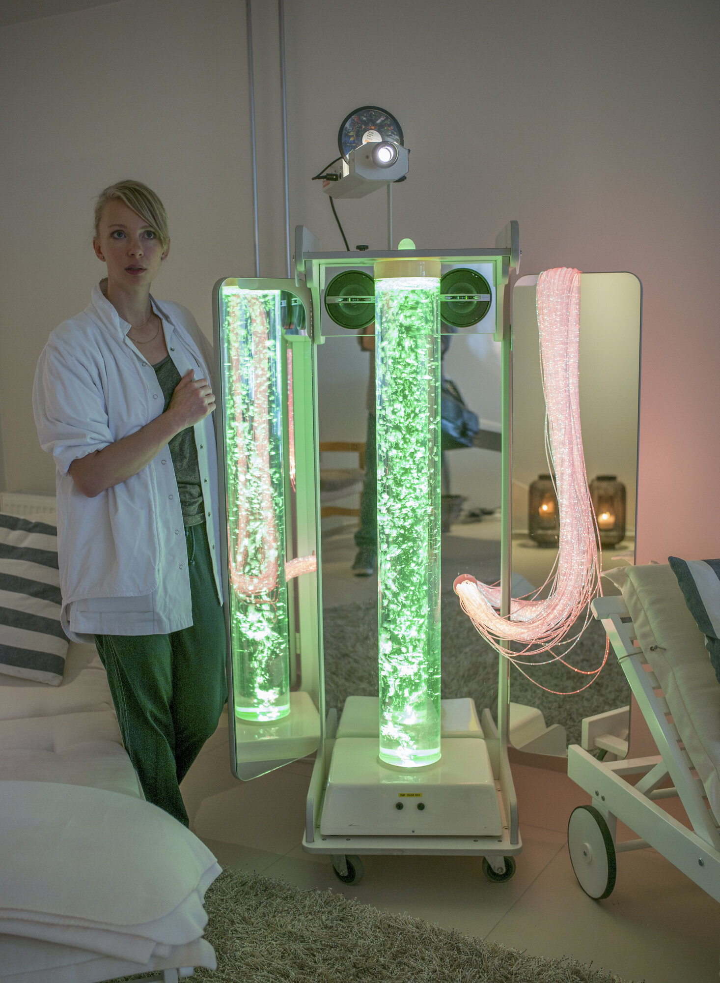 – Vår omsorgsfilosofi er blant annet at demente trenger aktiviteter, mosjon og en god natts søvn slik at de ikke snur døgnet. Alle står derfor opp mellom 7 og 9. Etter frokost er det en time mosjon, etterfulgt av lunsj, hvilestund og aktiviteter. Middagen serveres fra klokken 18, og senest 23 er det ro. Alt er planlagt, fra hva slags musikk vi spiller til ulike tider på døgnet til variasjon i belysning og type aktiviteter, sier May Bjerre Eiby.