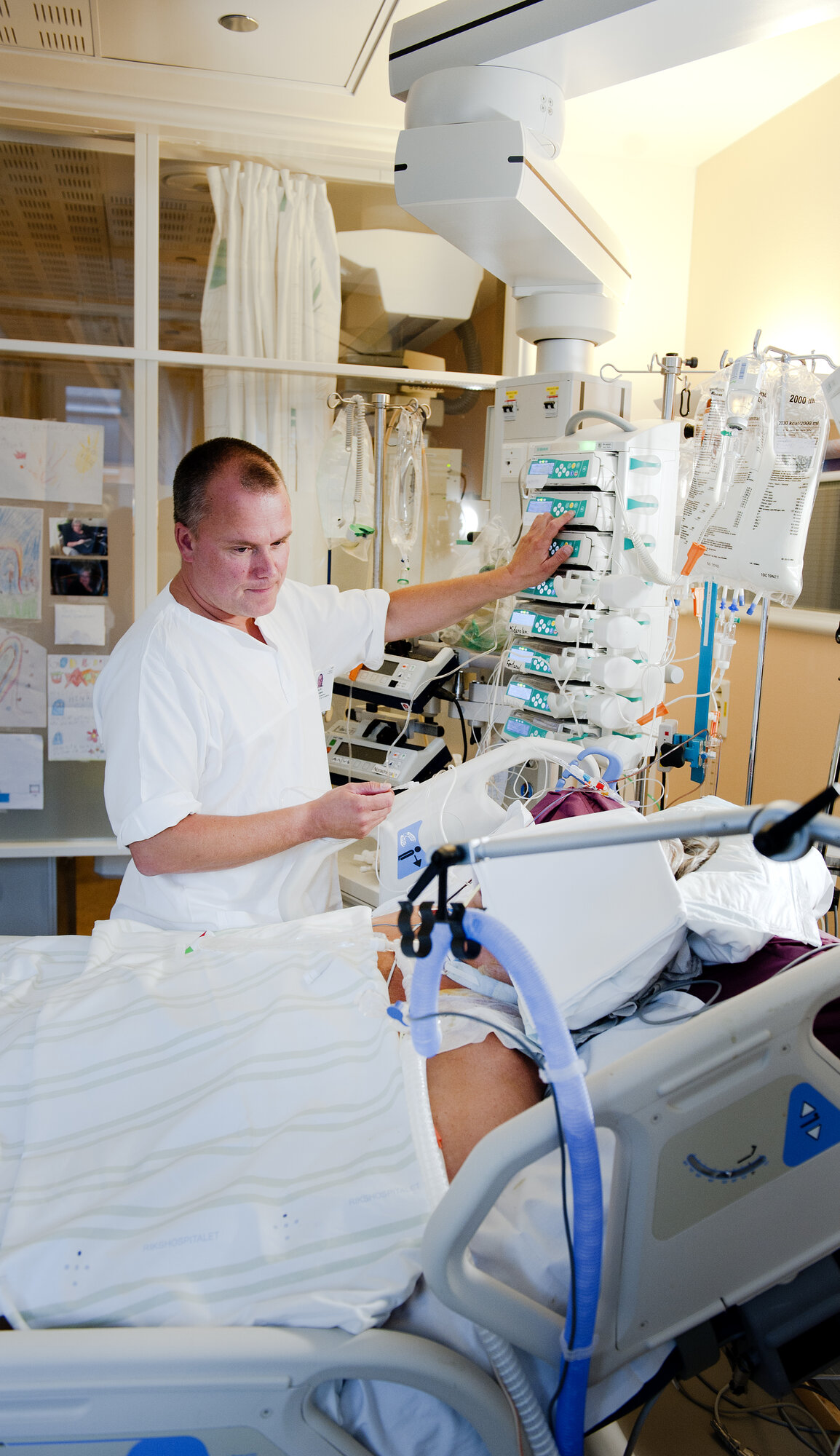 Når jeg kommer på vakt, får jeg tildelt en pasient som jeg har ansvaret for mens jeg er på jobb. Jeg får vite hva som feiler pasienten og hvilke utfordringer som er aktuelle. Det er min oppgave å sørge for at tiltakene realiseres. Mesteparten av tiden er jeg ved pasientens seng. Jeg følger med på alt som skjer; endringer i temperatur, urinproduksjon, bevegelser og lyder som kan tyde på smerte eller ubehag.