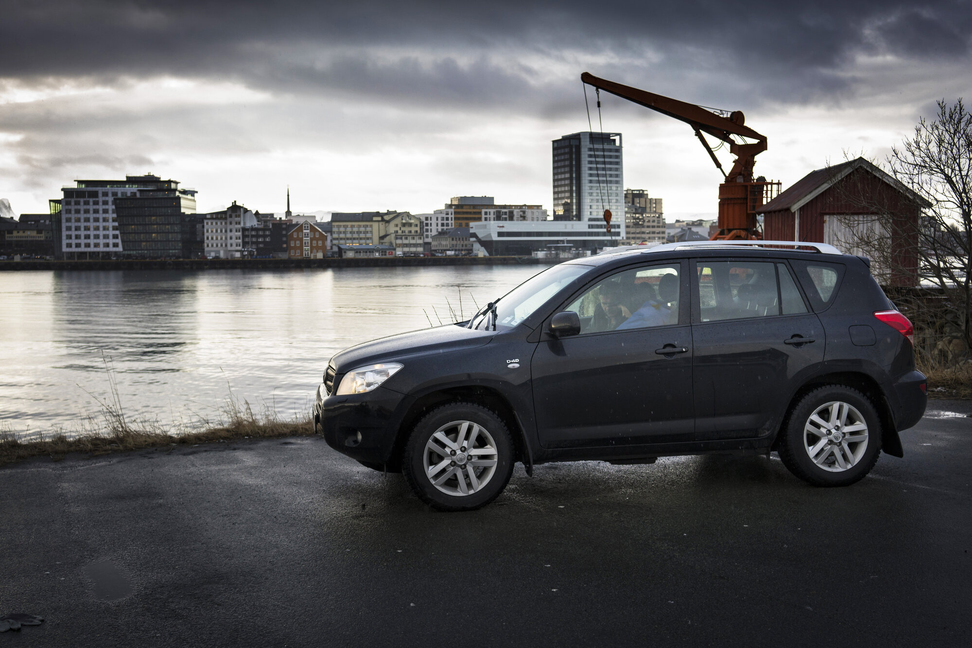 Så går turen ut på trafikkert vei til Burøya hvor sildoljefabrikken ligger. Bodøs tidligere hjørnesteinsbedrift. Det gires opp og bilen hopper.