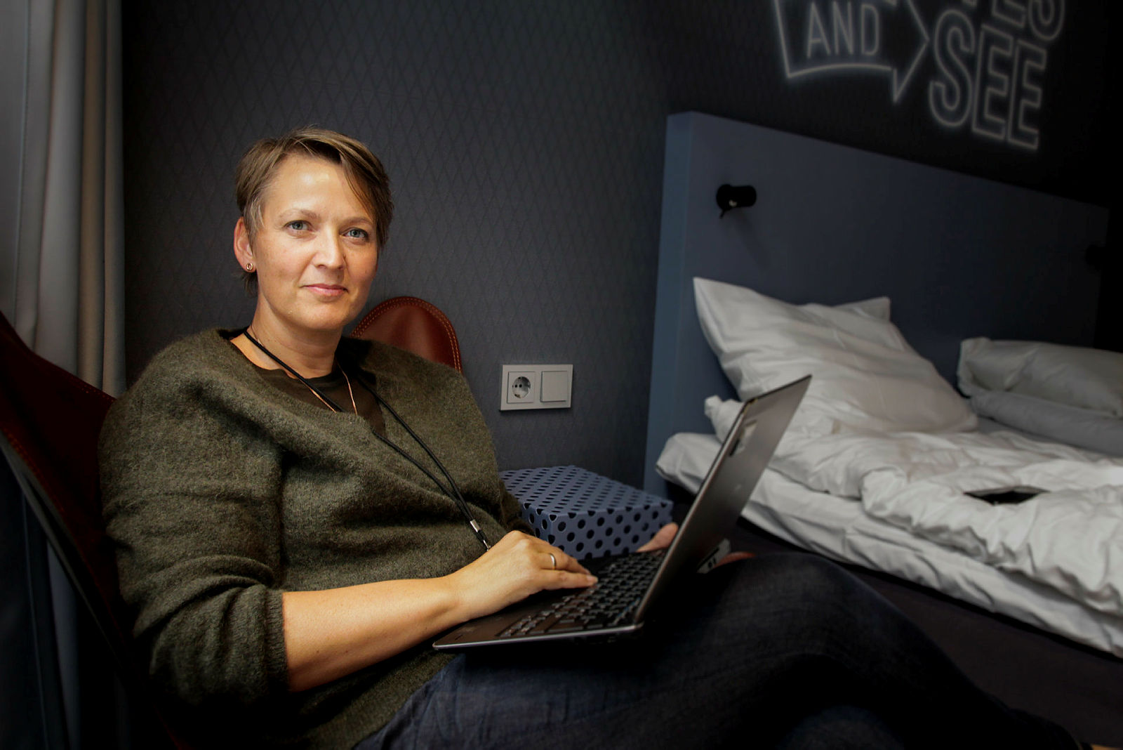 – Det er billigere enn mange andre hoteller, dessuten har det treningsrom, forklarer hun på en slags sørlandsdialekt som av og til bryter mot nordligere tonefall.