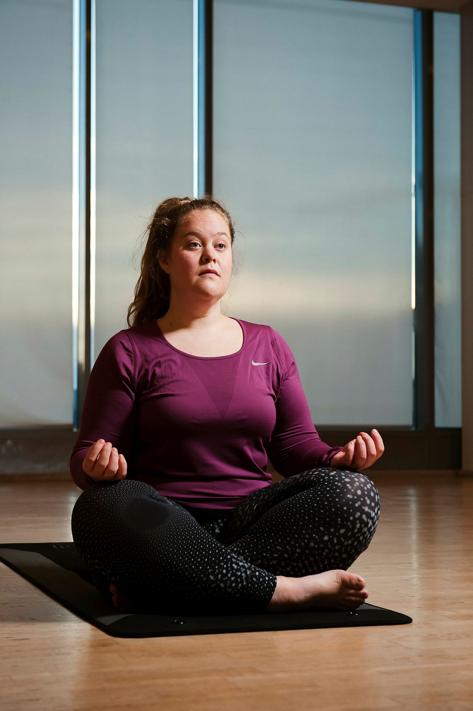 Jeg trener yoga to ganger i uken på et treningssenter. Etter en lang turnusperiode kjennes det ekstra godt å kunne slappe av. Nå er det slik at jeg jobber hundre prosent i tredelt turnus, noe som fort blir hektisk. På yogaen legger jeg fra meg jobb og alle andre tanker. Under treningen merker jeg at ved hvert dype innpust, slapper jeg mer av.