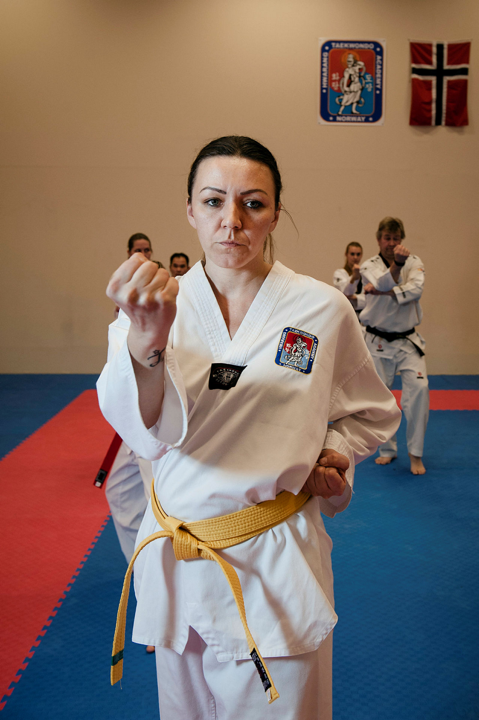 I to timer, to ganger i uken, er jeg på taekwondo-trening på Holmen i Asker og kan tenke bare på meg selv. Eller rettere sagt: tenke på ingenting. Ingenting og pusten. Det eneste som gjelder er å konsentrere alt man har om det ene sparket eller det ene slaget. Du må samle all energien i hver bevegelse og sørge for at det blir kraftig og presist nok. Det er egentlig ikke så vanskelig. Det er deilig. Hvis man er stresset eller frustrert, kan man få det ut ved å slå og sparke hardt uten å tenke på noe konkret. Bare få det ut av kroppen. Det gir meg styrke på alle måter.
