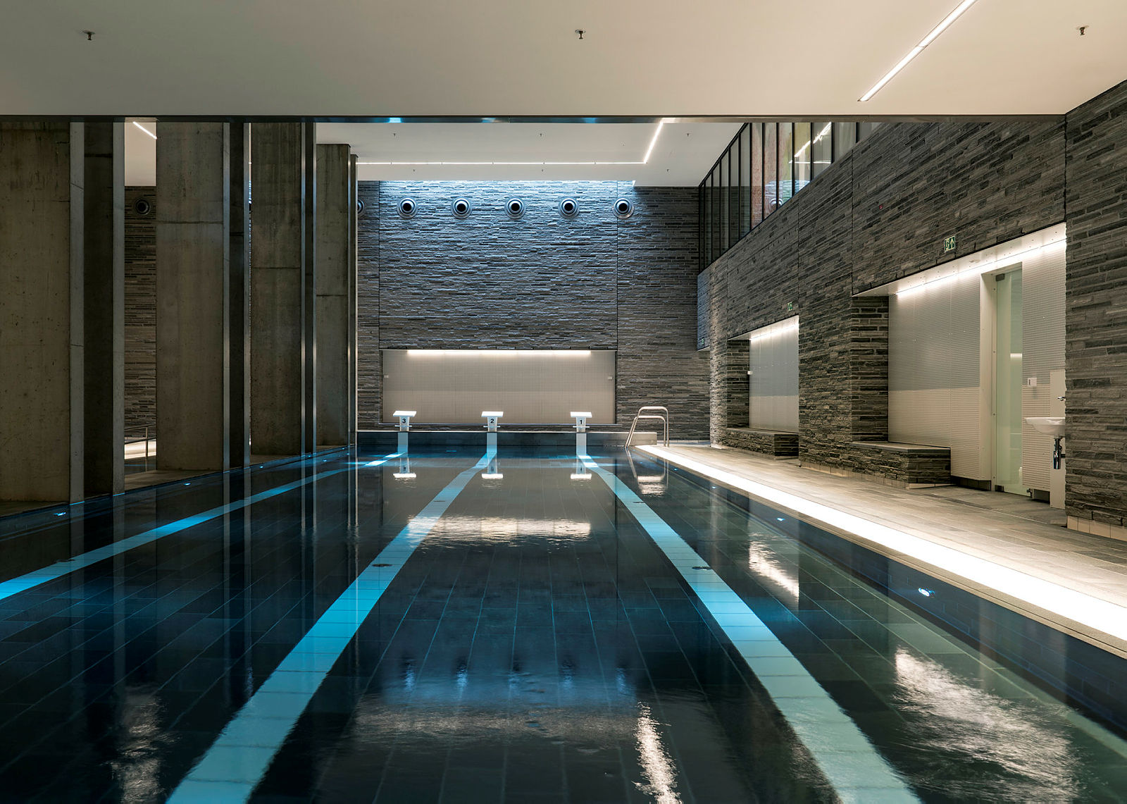 Det andre mottoet har vært å prioritere sanselighet i rom og materialer. De har brukt mye naturmaterialer, som norsk skifer, tre og glass. Svømmebassenget ser for eksempel mer ut som en eksklusiv spaavdeling enn et sykehusbasseng. Lager fremholder at de bevisst har forsøkt å legge til rette for at brukerne skal få en rolig og intim følelse i bassengområdet.