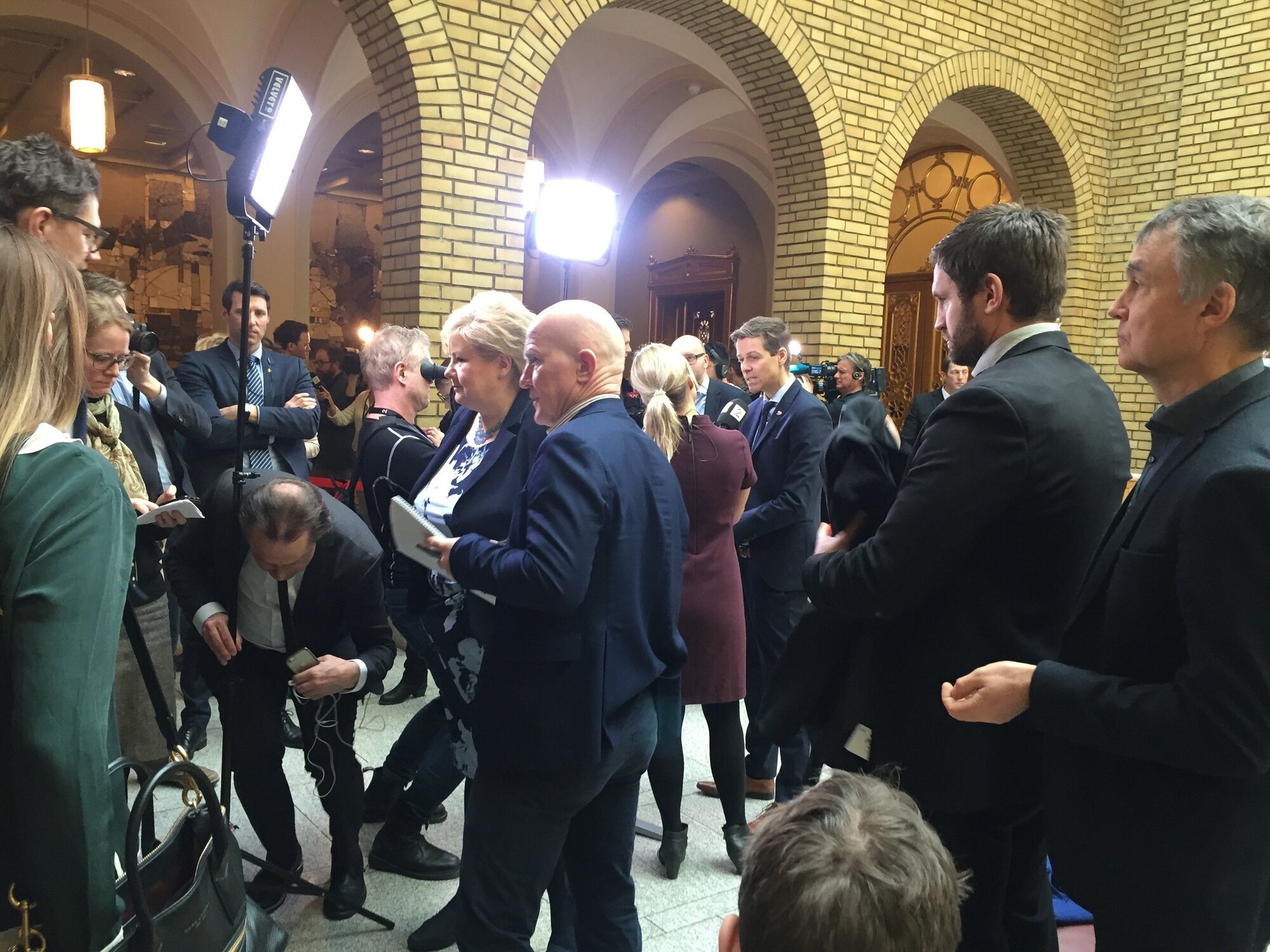 Deretter går det slag i slag: Stortinget gjør et såkalt daddelvedtak, en reaksjon som bare er brukt elleve ganger siden krigen, og som kritiserer justisminister Sylvi Listhaug for en Facebook-post. Etter det, koker det i alle hjørner av Stortinget frem til tirsdag, hvor det i morgentimene spekuleres på regjeringens avgang, men det ender med at Listhaug sier fra seg ministerposten.