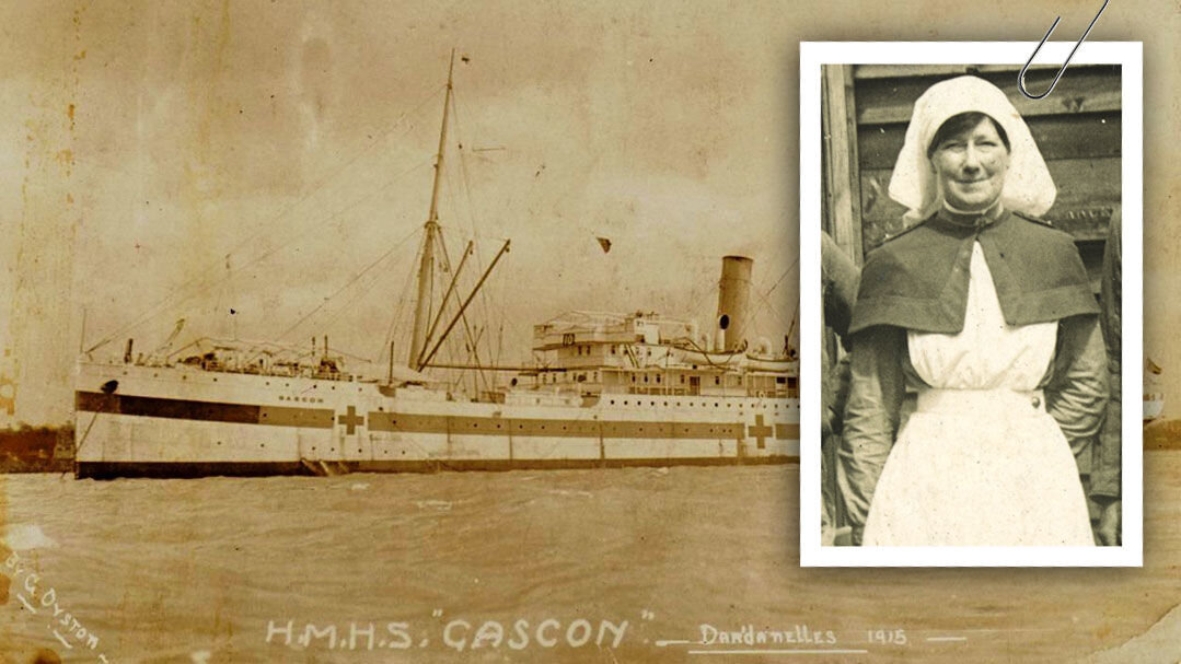 Under slaget om Dardanellene fraktet sykehusskipet «Gascon» sårede soldater ut av kampsonen ved Gallipoli og over til relativ ro og trygghet på gresk territorium. I juni 1915 gikk Hilda Samsing om bord i skipet for å gjøre tjeneste. Hun og venninnen søster Alice Kitchen hadde fått innfridd sitt ønske om å forlate Egypt for å jobbe i syketransporten fra fronten.