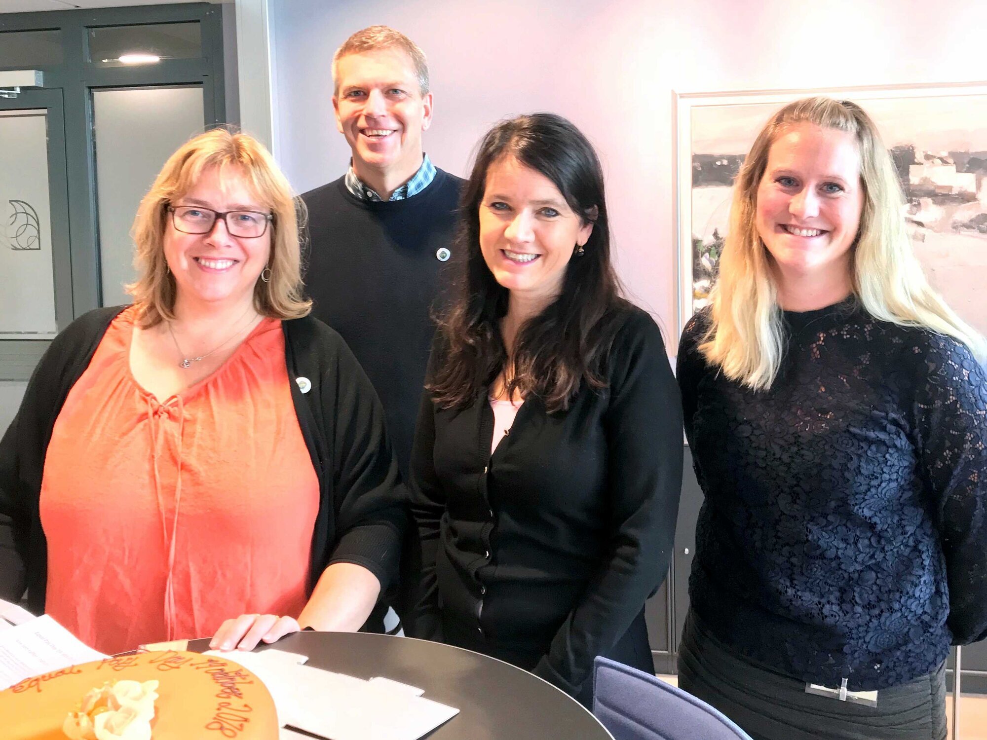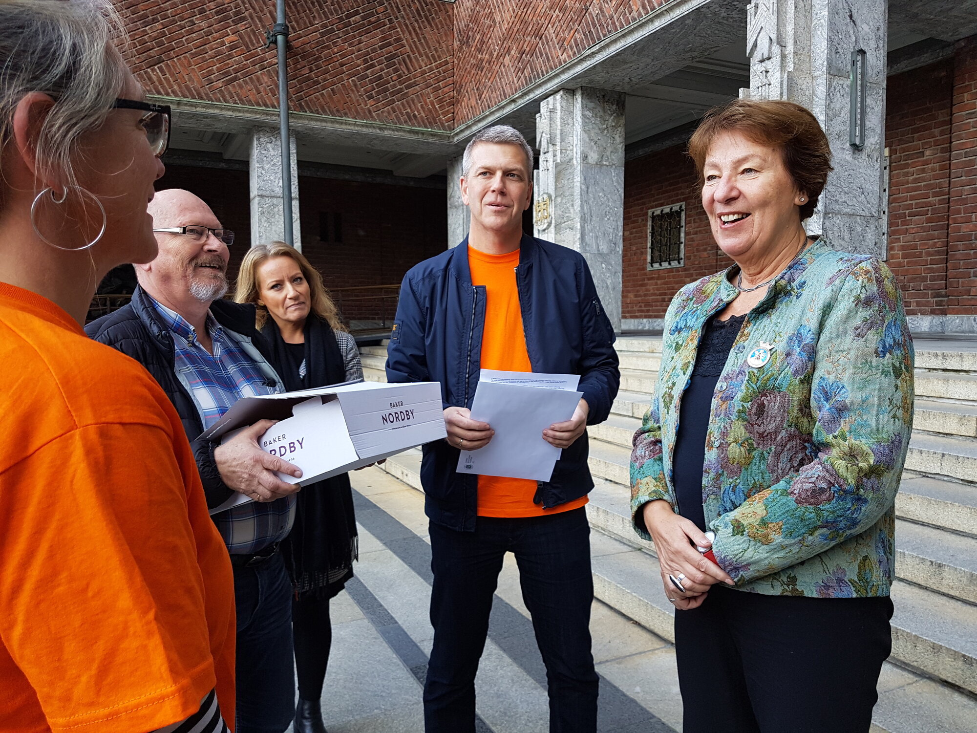 Ordføreren møtte forbundene ved rådhustrappene og inviterte dem inn på ordførerkontoret, hvor de overleverte et brev fra Unio – mens de spiste kake, med samtale rundt likelønn.