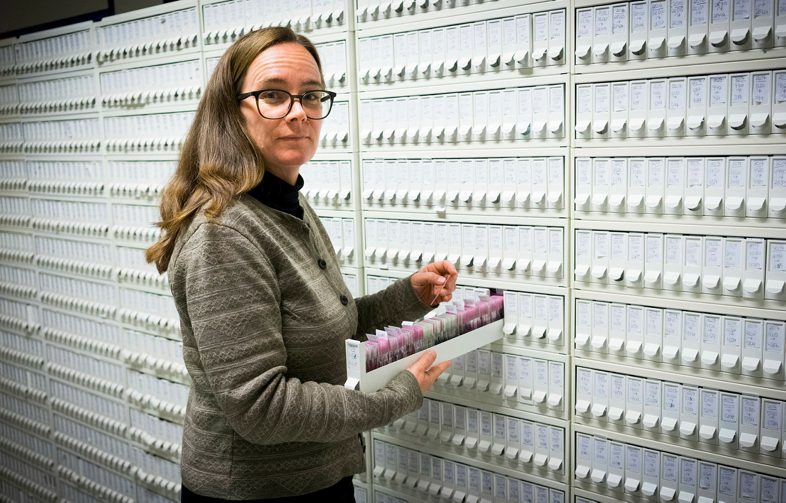 Russnes viser vei gjennom korridorene på patologisk avdeling i andre etasje i laboratoriebygget på Ullevål. Veggene er dekket av hvite skuffeseksjoner. De inneholder de fysiske vevsprøvene fra tusenvis av pasienter fra de siste årene. Flesteparten av prøvene er tatt for å bekrefte eller avkrefte mistanke om kreft.