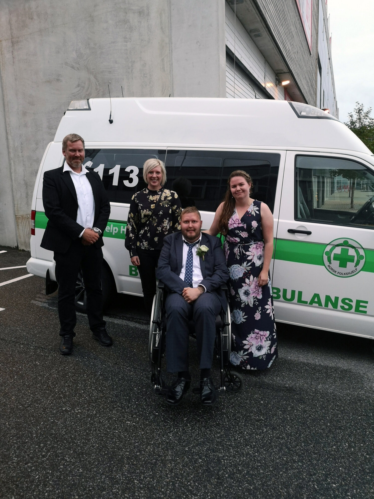 To personer, en sykepleier og en ambulansearbeider, var med Daniel Grødeland både under transporten til og fra kirken og festen. De var også med på hele seremonien i kirken og på festen.