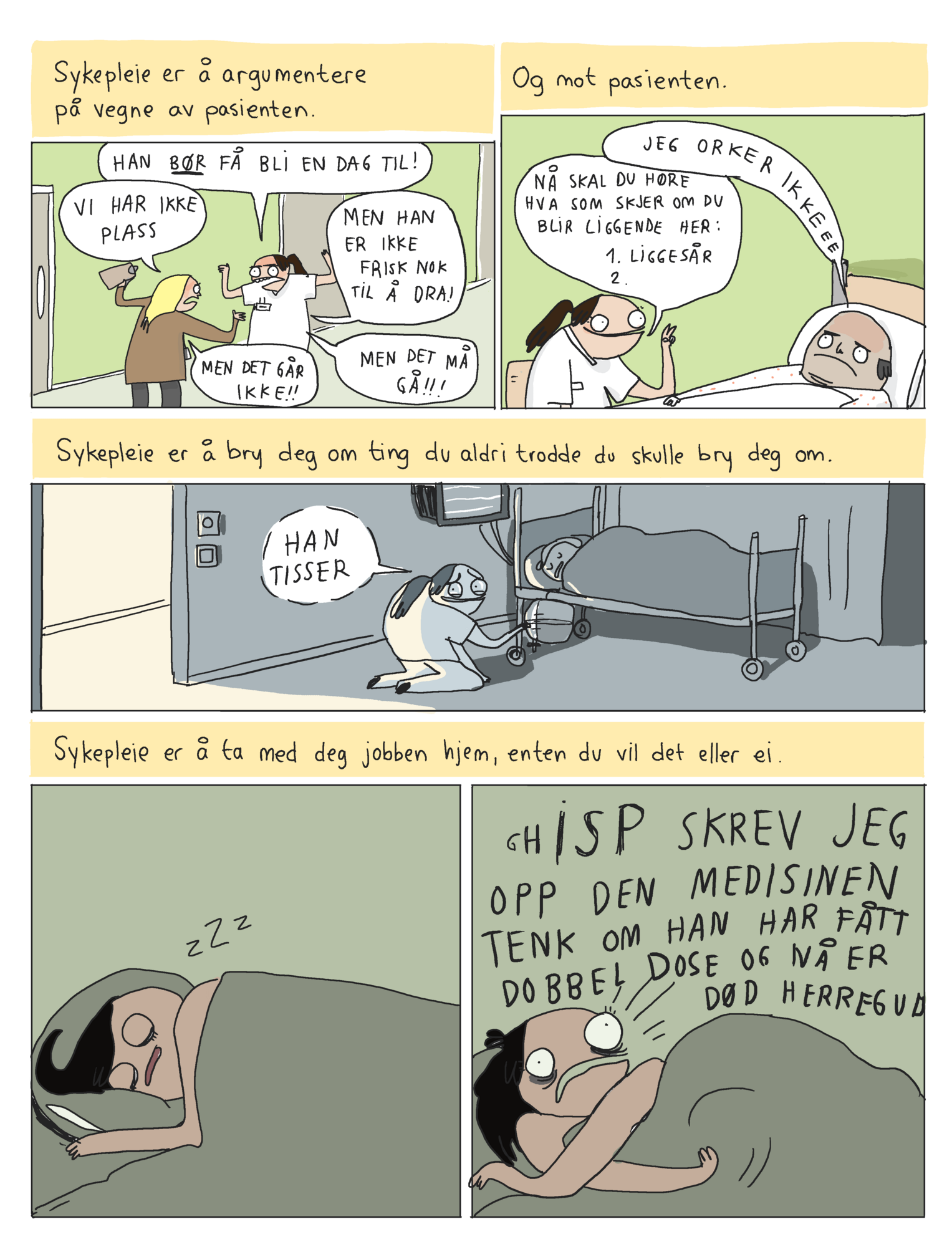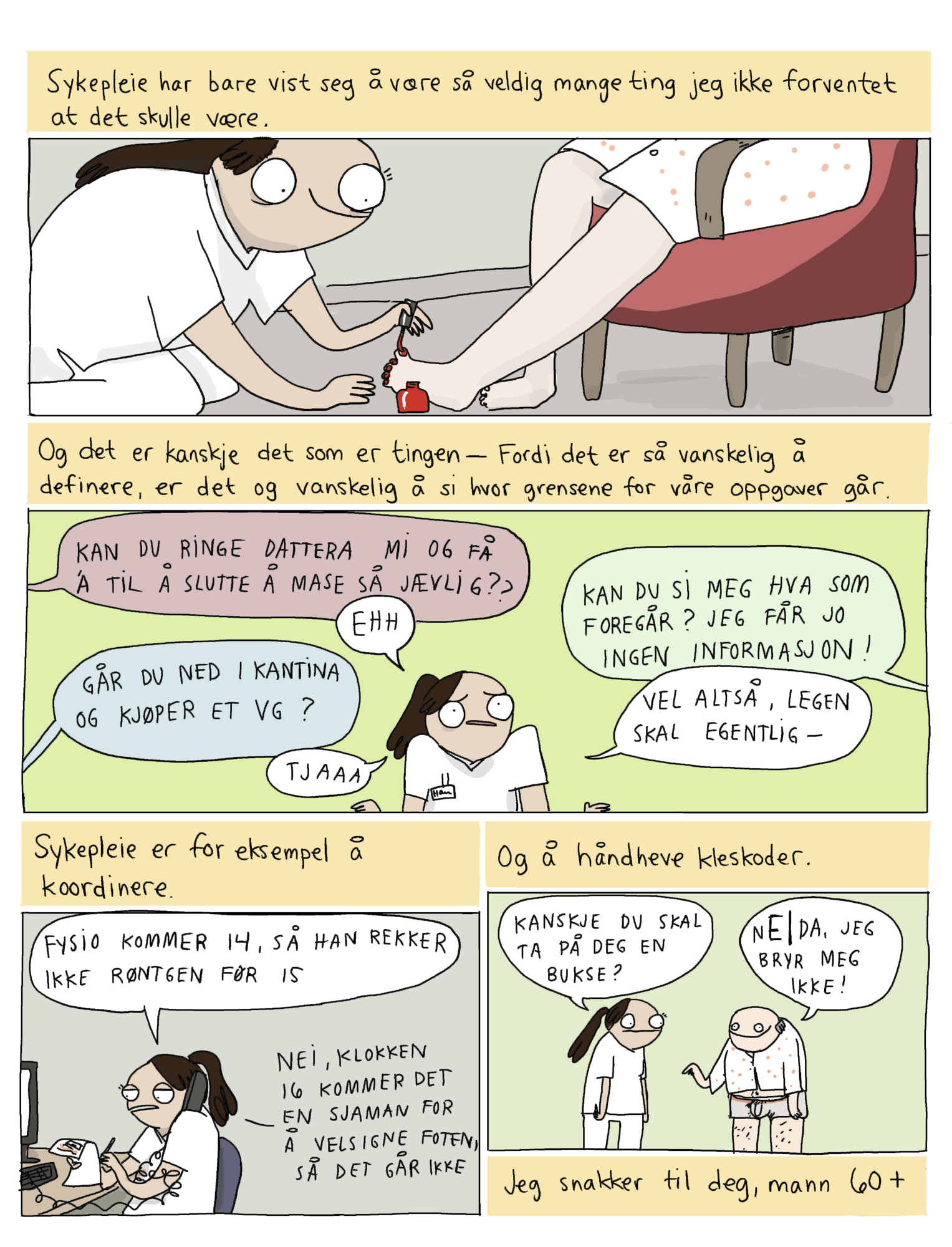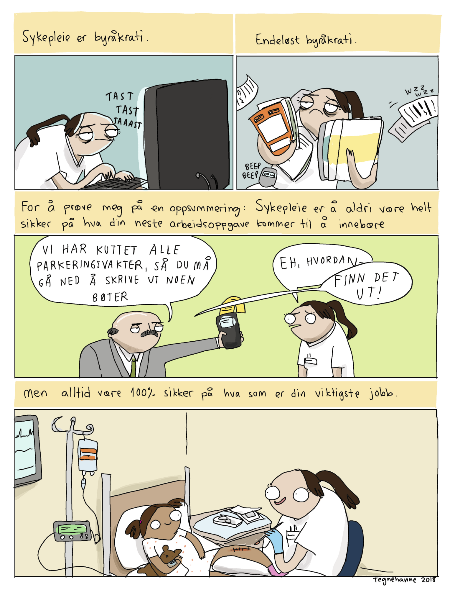 Tegnehanne: Sykepleie er å ta med deg jobben hjem, enten du vil det eller ei
