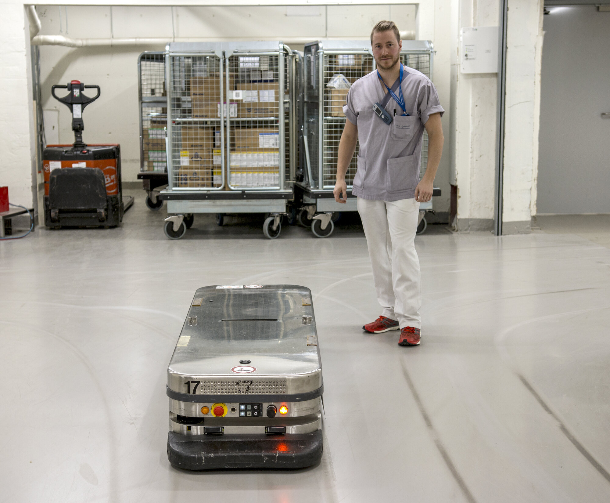 – For at sykepleierne skal kunne konsentrere seg mest mulig om pasienten, tar vi hånd om alt som handler om varelogistikk. Mye av verdien i det vi gjør, handler om å avlaste pleierne, sier Christopher Feste Larsen.