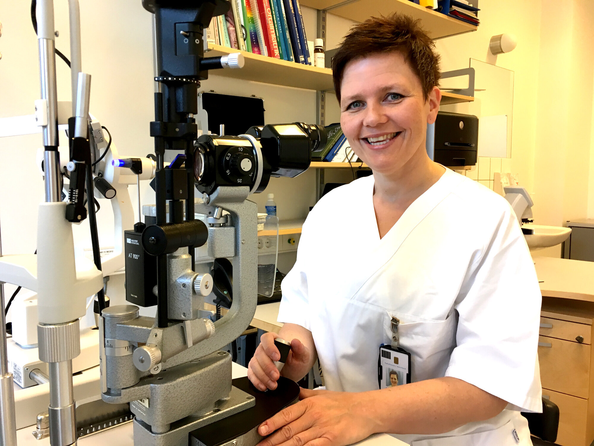 Det ble utlyst en stilling som øyesykepleier, med krav om gjennomføring av videreutdanning. Jeg fikk stillingen og jobbet som sykepleier på øyepoliklinikken i nesten et år før jeg begynte på etterutdanningen. Nå har jeg jobbet her i 18 år!