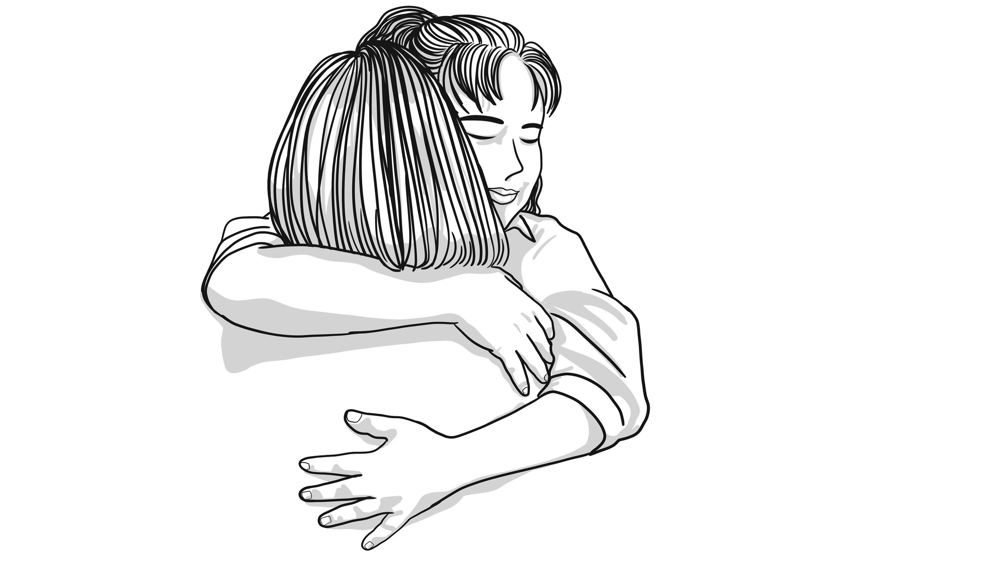 Illustrasjonen viser to mennesker som holder rundt hverandre.