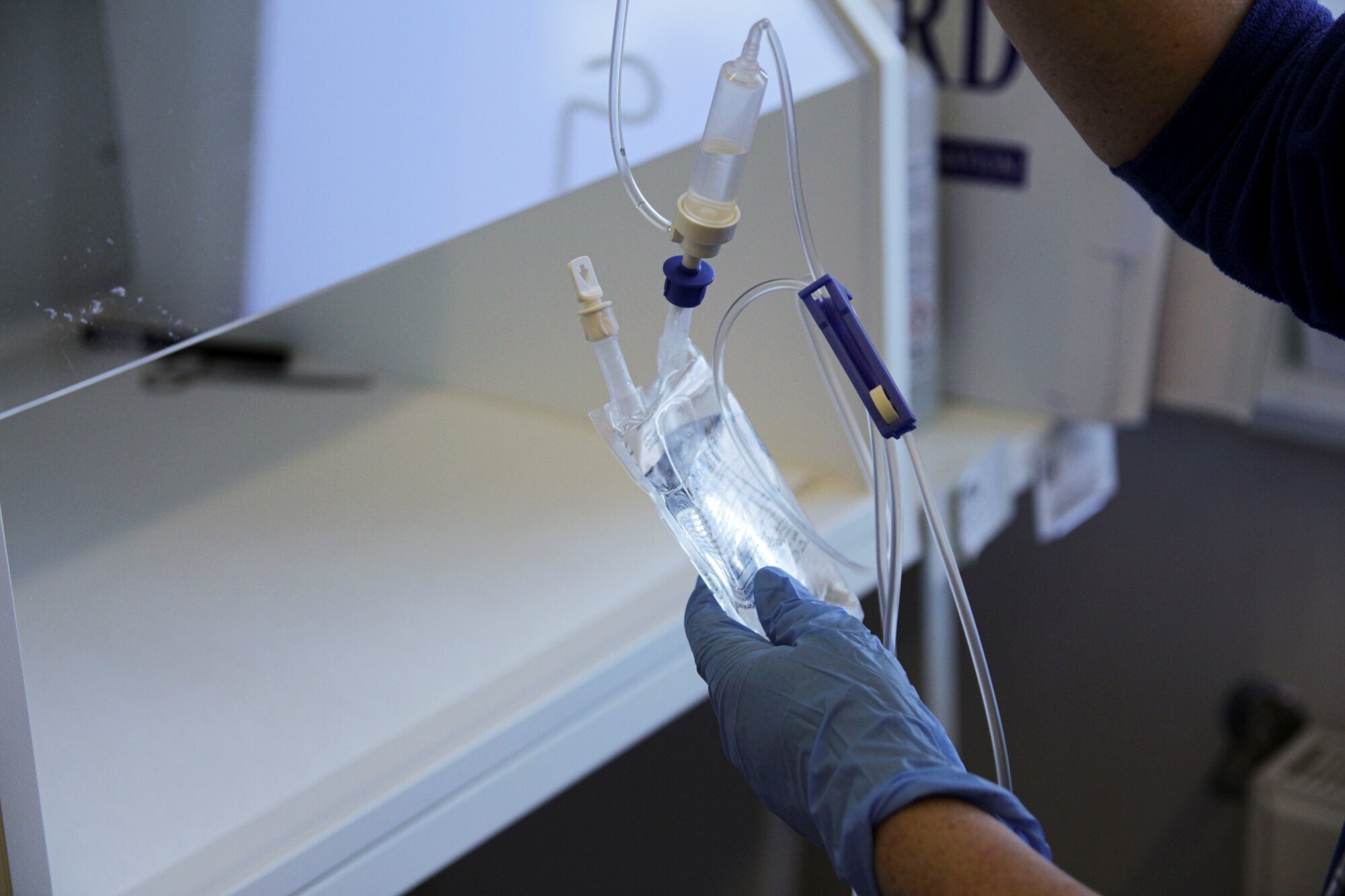 Farmasøytene jobber halvannen time og danner seg et bilde av behovet for det inneværende døgnet, snakker med sykepleier og finner ut hva som skal blandes. Apotekteknikere gjør alt det praktiske, både oppfølgingen av disse rutineoppgavene og selve utblandingen.