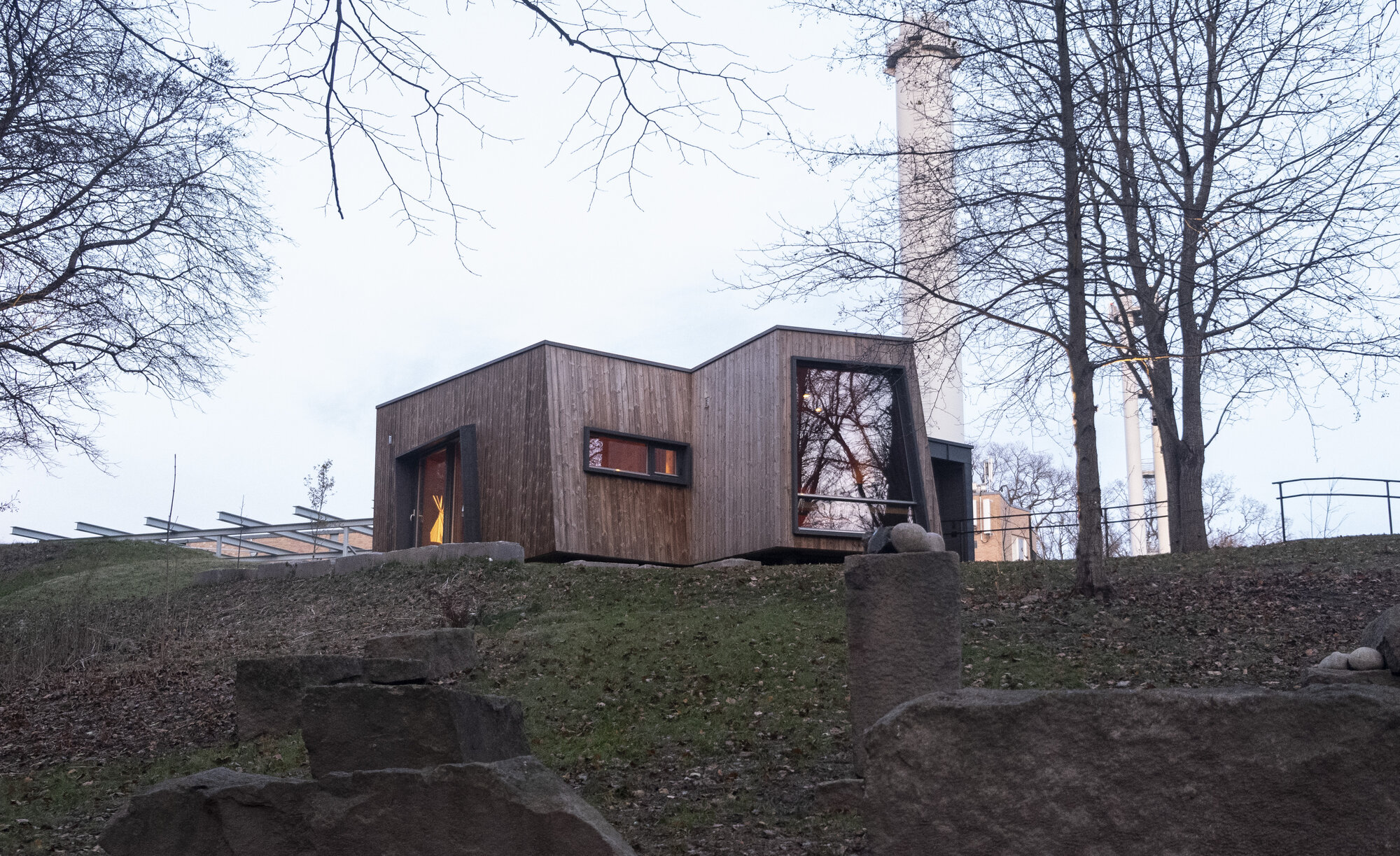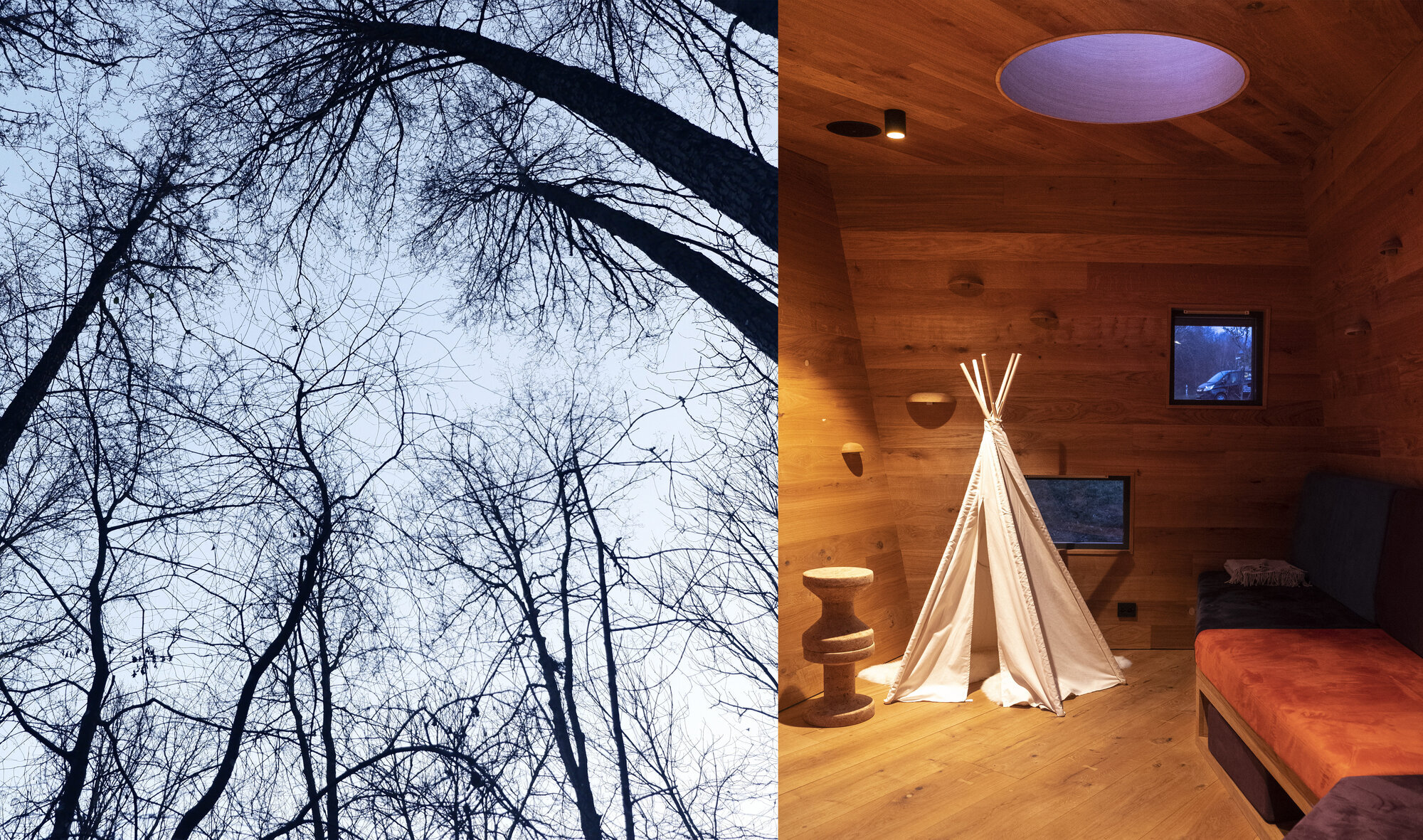 Det tar fire minutter å gå fra Rikshospitalet og opp til Friluftssykehuset. Trehuset med sine kvadratiske former bryter opp sykehuslandskapet. Bak huset sildrer det fra Sognsvannsbekken. Inne er veggene dekket av eik, og uansett hvor man står, ser man ut mot skogen.