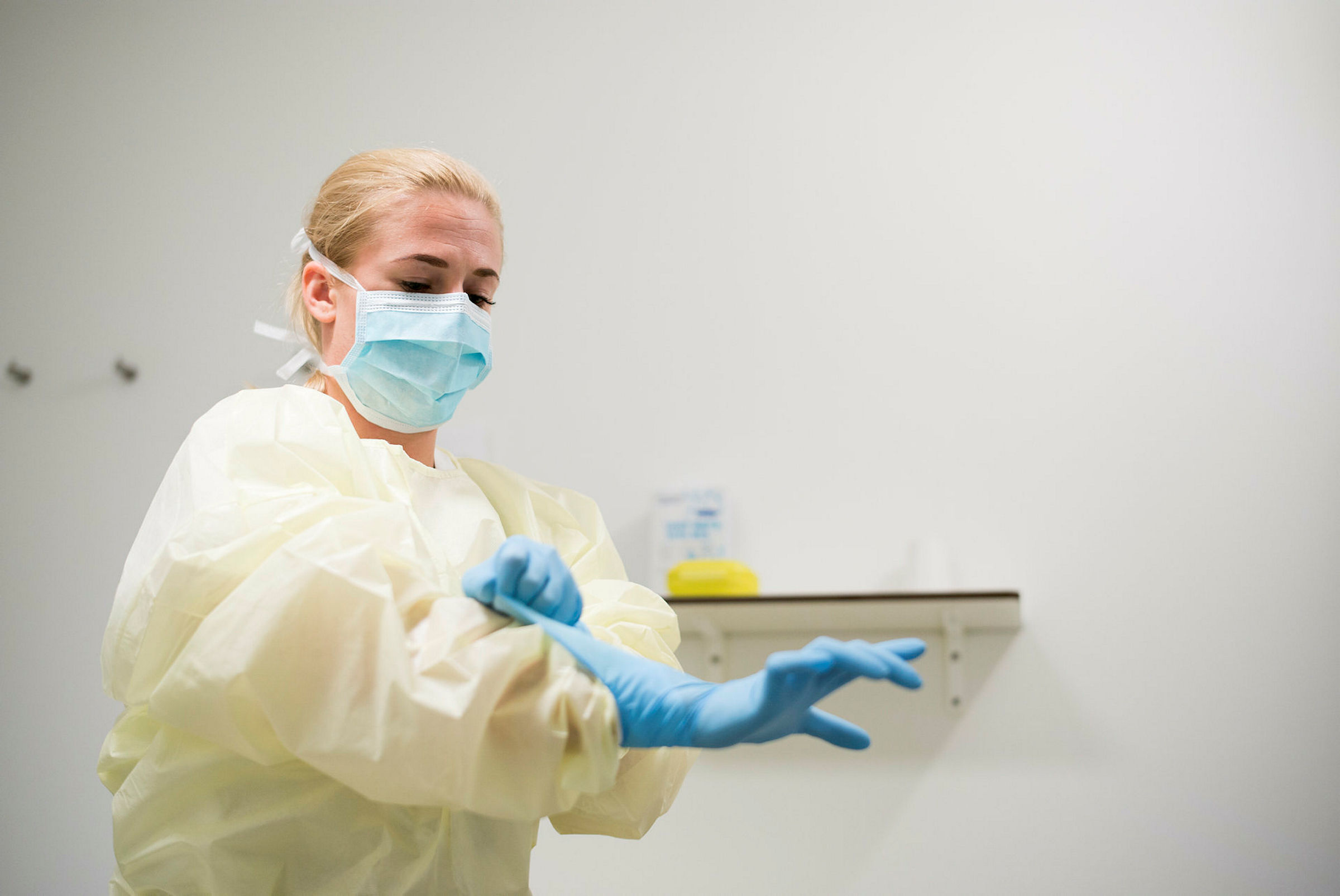 – Er det indikasjon for testing, eller allerede diagnostisert covid-19, brukes kirurgisk munnbind, frakk med lange ermer, hansker og øyebeskyttelse, sier hun.