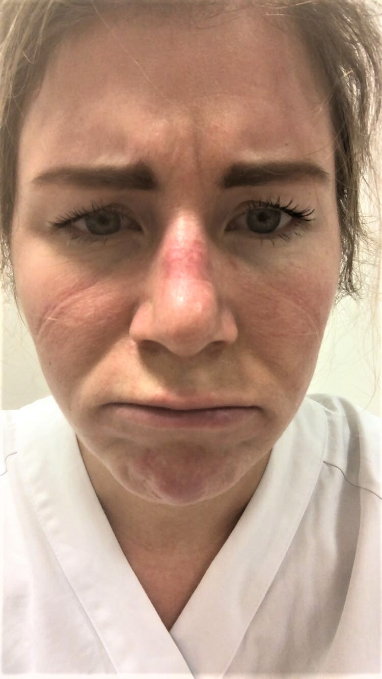 Masker, beskyttelsesbriller og visir gir trykksår på nesen og panne