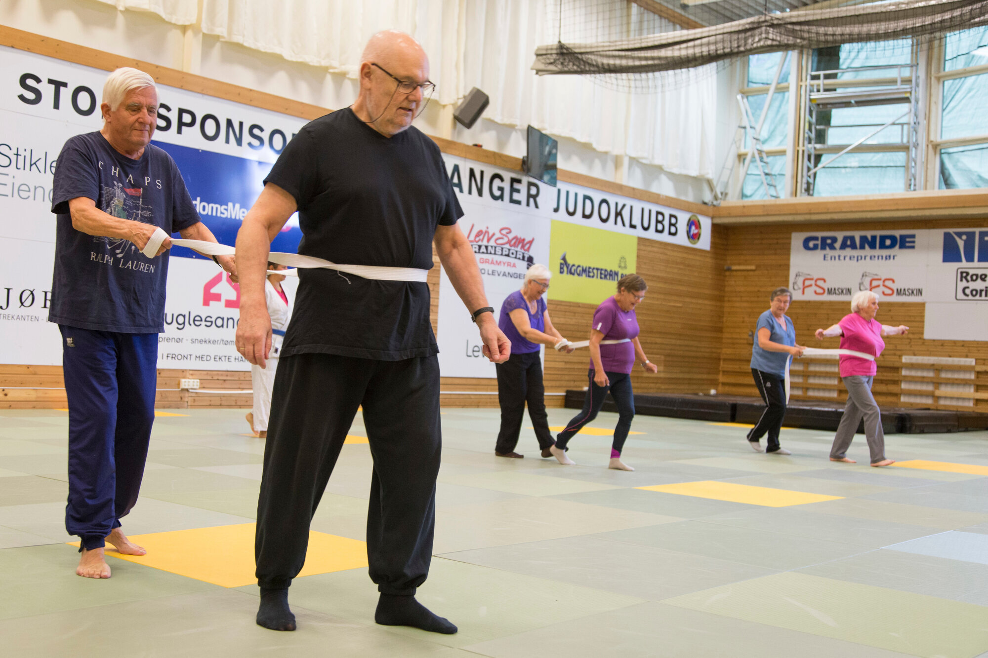 I den godt polstrede salen til Levanger Judoklubb i Trøndelag trener eldre på å falle. De triller rundt, hiver seg baklengs, sidelengs og forlengs. Poenget er å falle mykt, uten å skade seg. Og å bli mindre redd.