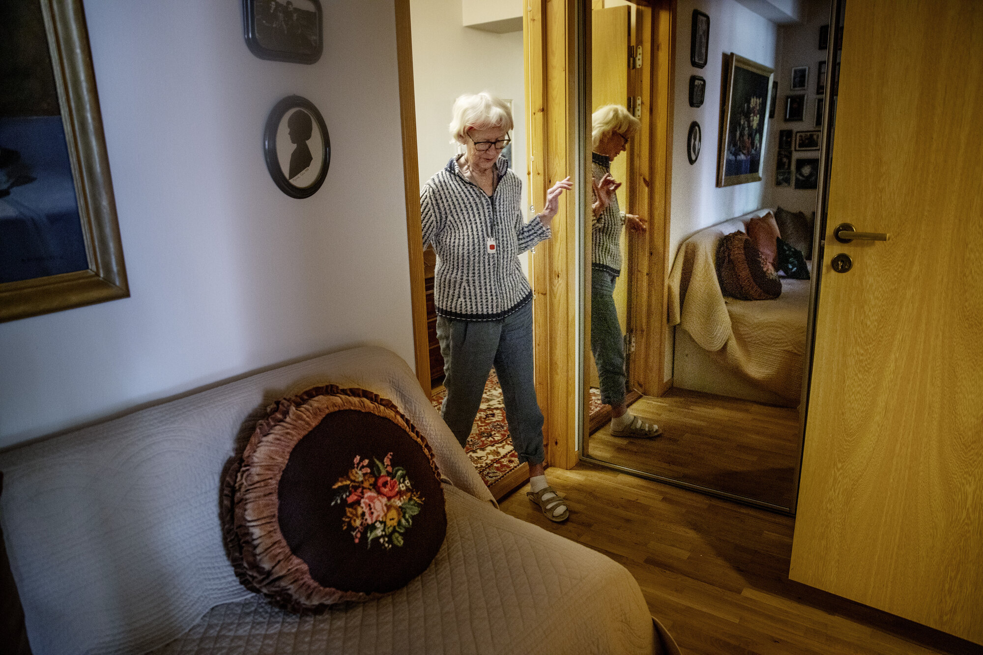 – Jeg føler meg trygg med rullatoren. Jeg har akkurat vært på butikken og handlet, så det klarer jeg fint med den, sier hun.