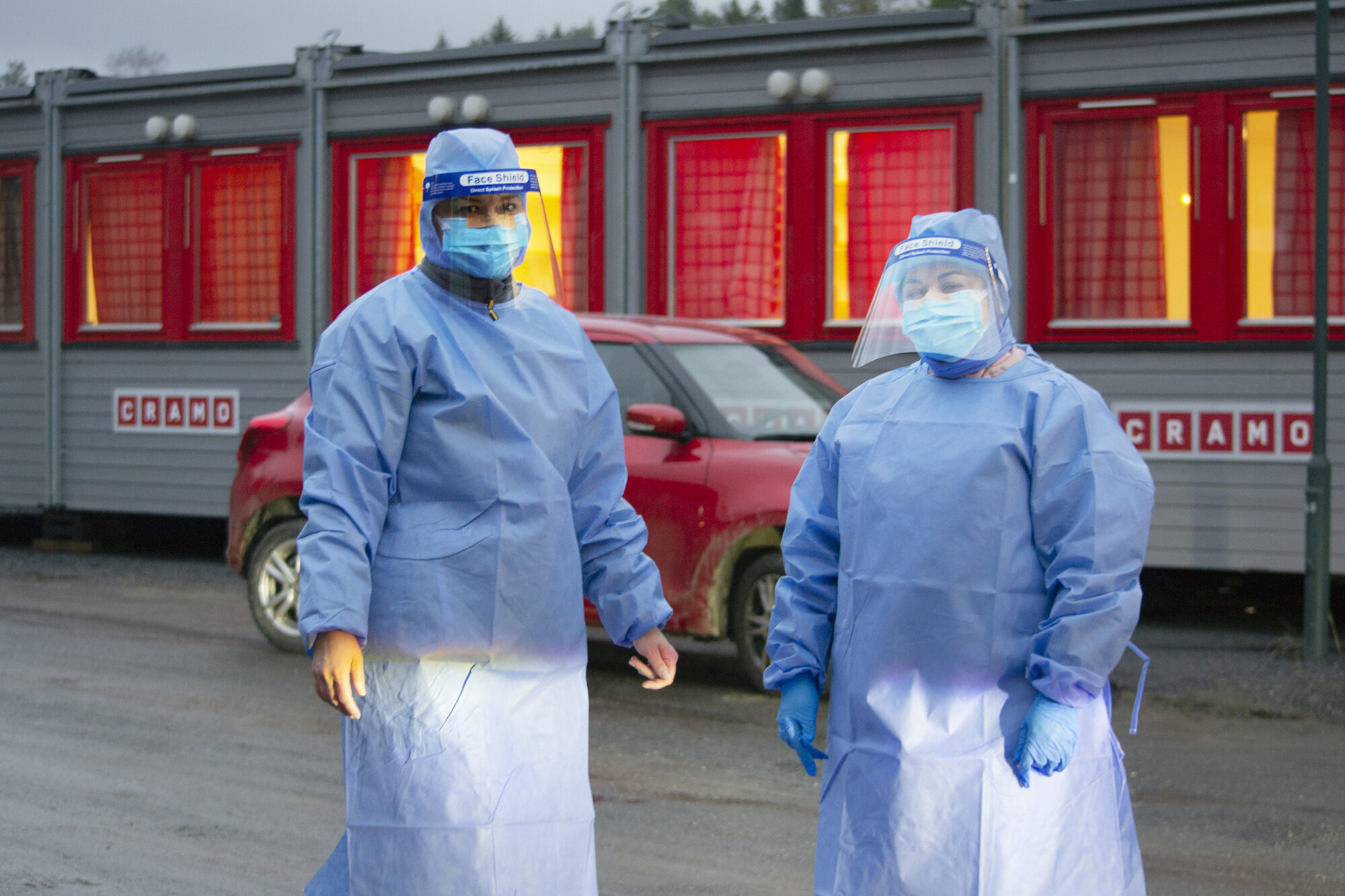 Når vi tester, er vi mellom to til fire som gjør det, slik at det ikke blir kø ned til hovedveien. Men antallet testere kommer an på hvor mange som skal testes. De som skal testes, kommer enten med bil, eller de kommer gående. Vi prioriterer dem som kommer gående først, slik at de ikke skal stå i kulda.
