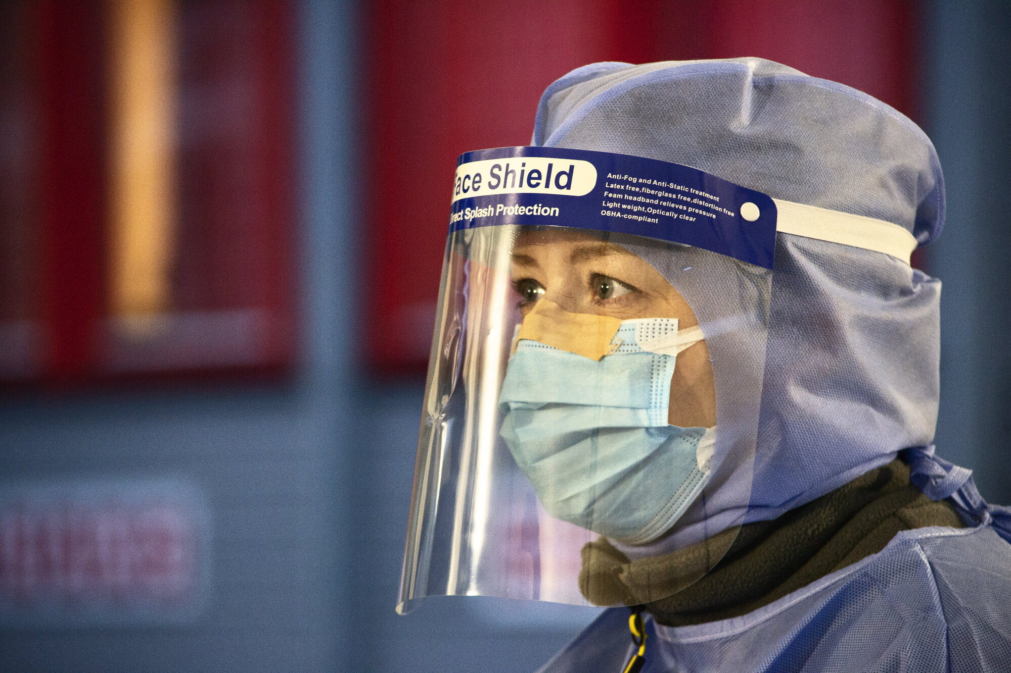Jeg synes ikke det er skummelt å jobbe så tett på viruset, fordi vi er så godt beskyttet. Vi har fullt smittevernutstyr. Vi har smittefrakker, en slags lue, verneskjold, som heter visir, munnbind og hansker. Vi bytter hansker mellom hver test vi tar. Hver gang vi har vært ute og testet, så bytter vi alt utstyret og kaster det gamle. Jeg tror det er mer sannsynlig å få viruset andre steder.