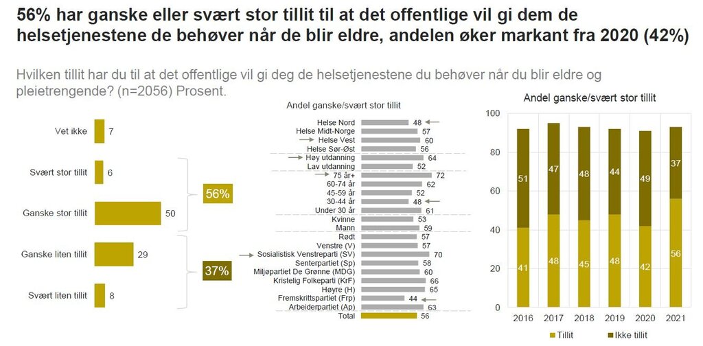 Velgerne i nord har også lavest tillit til at de får de helsetjenestene de trenger når de blir eldre og pleietrengende (48 prosent).