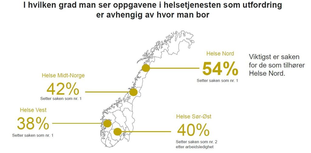 Helsepolitisk barometer, som ble lagt frem i dag, viser at velgere som tilhører Helse Nord, i størst grad ser oppgavene i helsetjenesten som en utfordring for Norge i årene fremover (54 prosent).