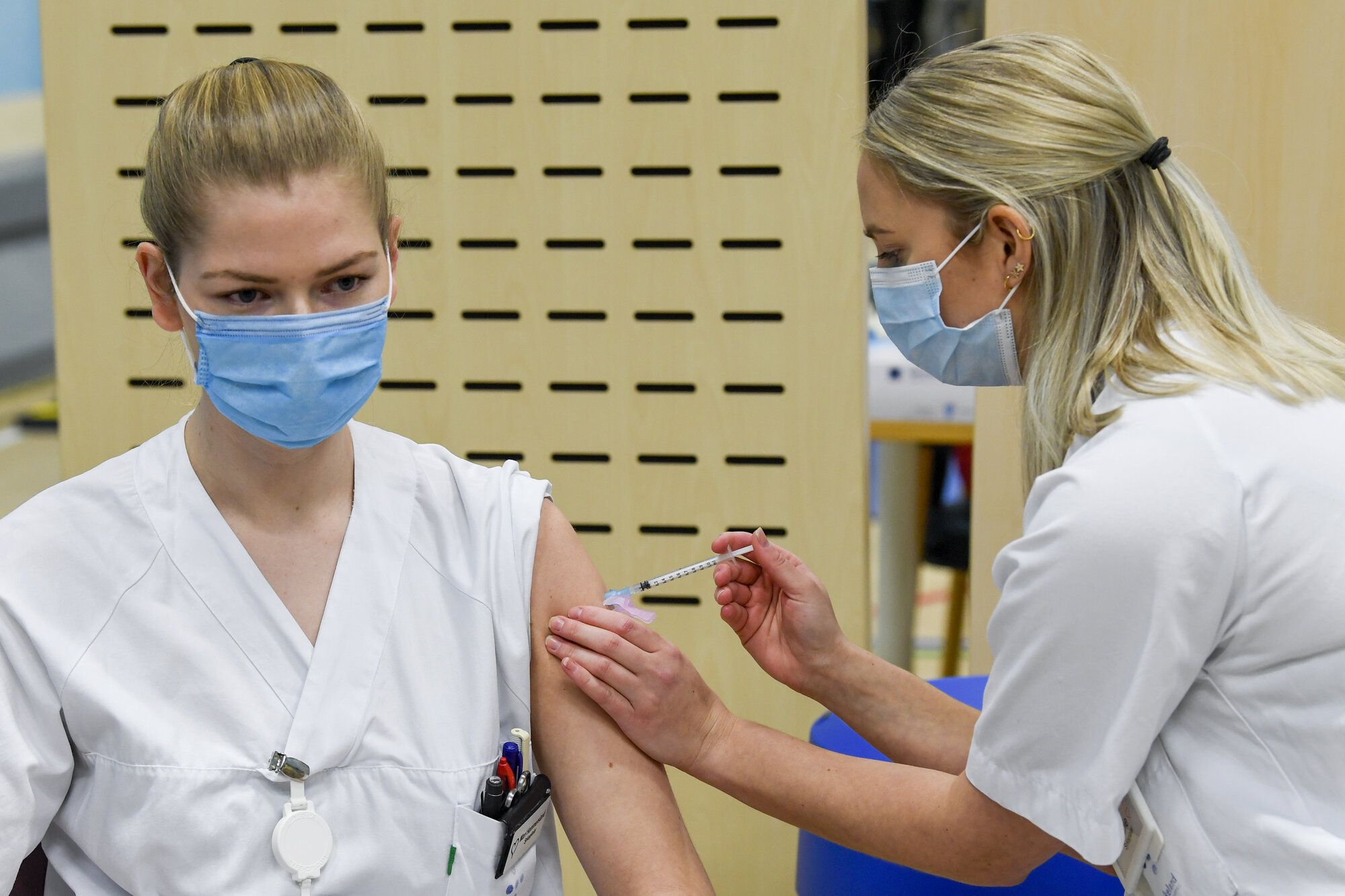 Mange sykepleiere har fått første dose med koronavaksinen fra Astrazeneca, som nå er satt på pause.