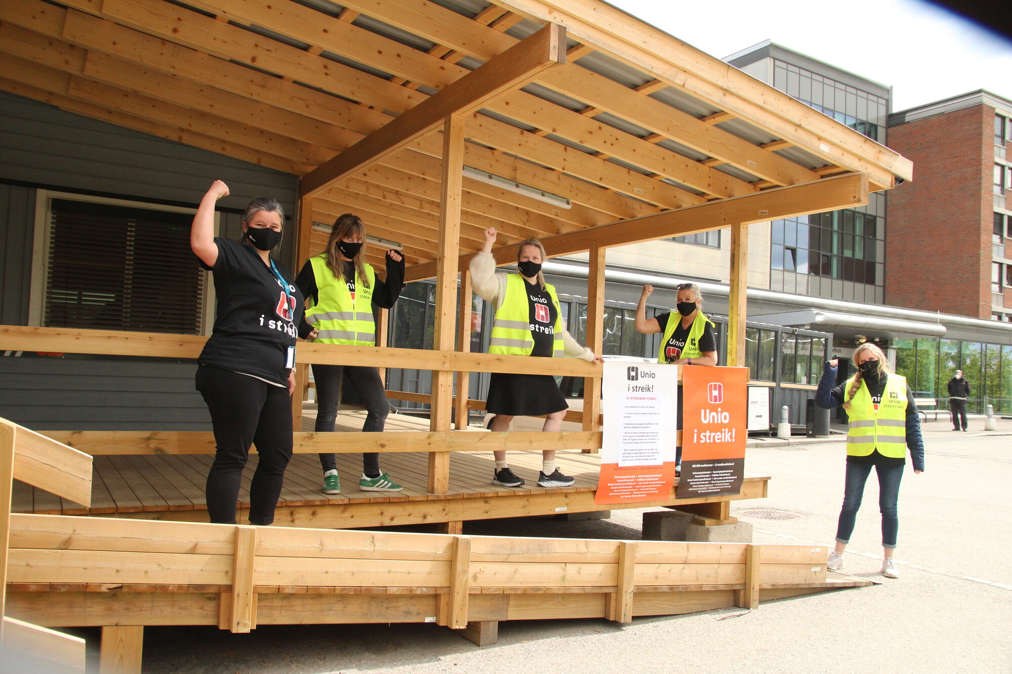 Klokka nærmer seg 13.00, og fire andre sykepleiere kommer til. Forberedelser til streikemarkering gjøres klar utenfor legevakten på Bærum sykehus.