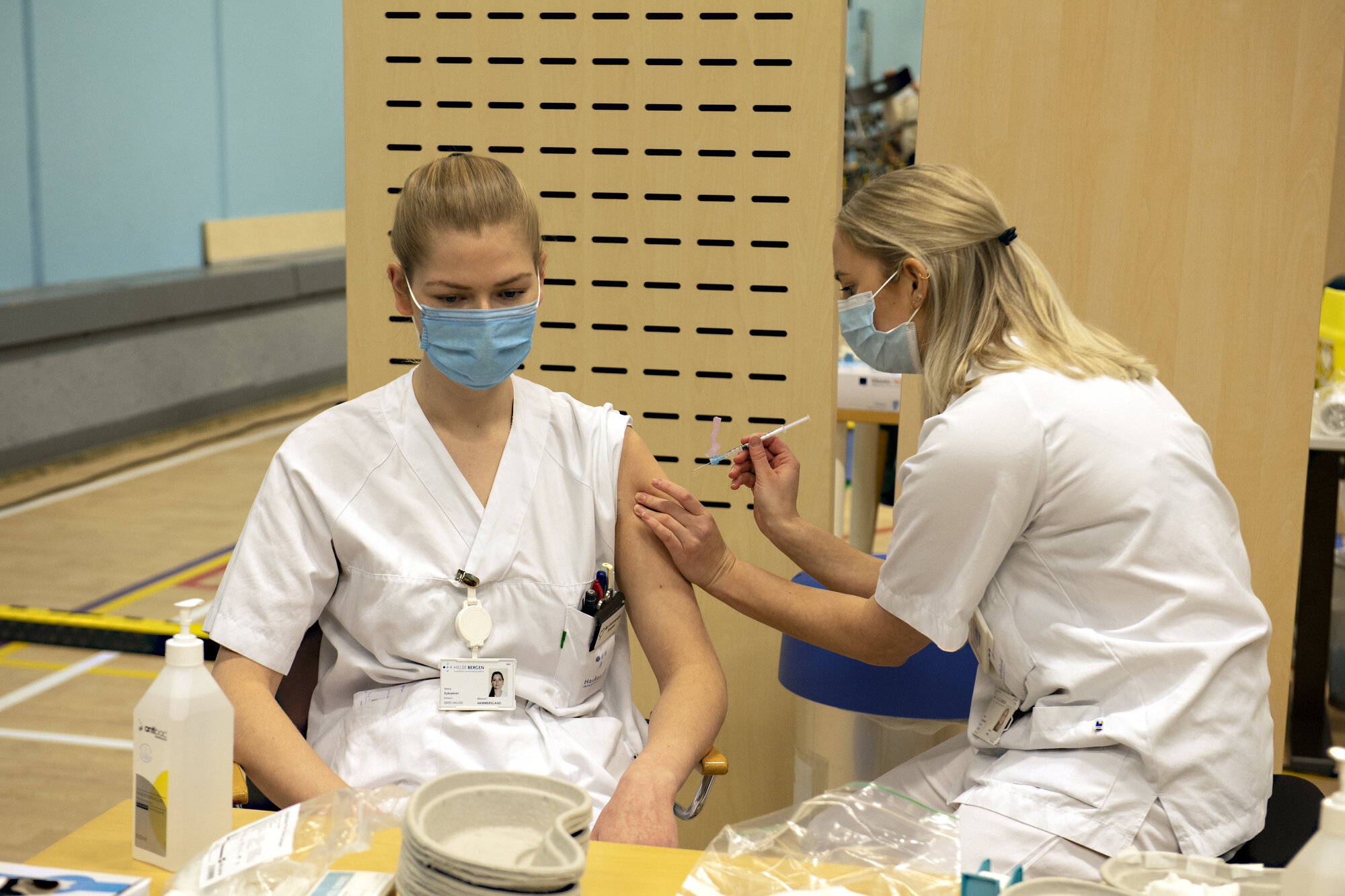 Én dose Astrazeneca og én dose Pfizer gir like høye nivåer av antistoffer og forsvarsceller som to doser Pfizer, ifølge FHI. Over 25 000 sykepleiere i helse- og omsorgstjenesten fikk første dose med Astrazeneca.