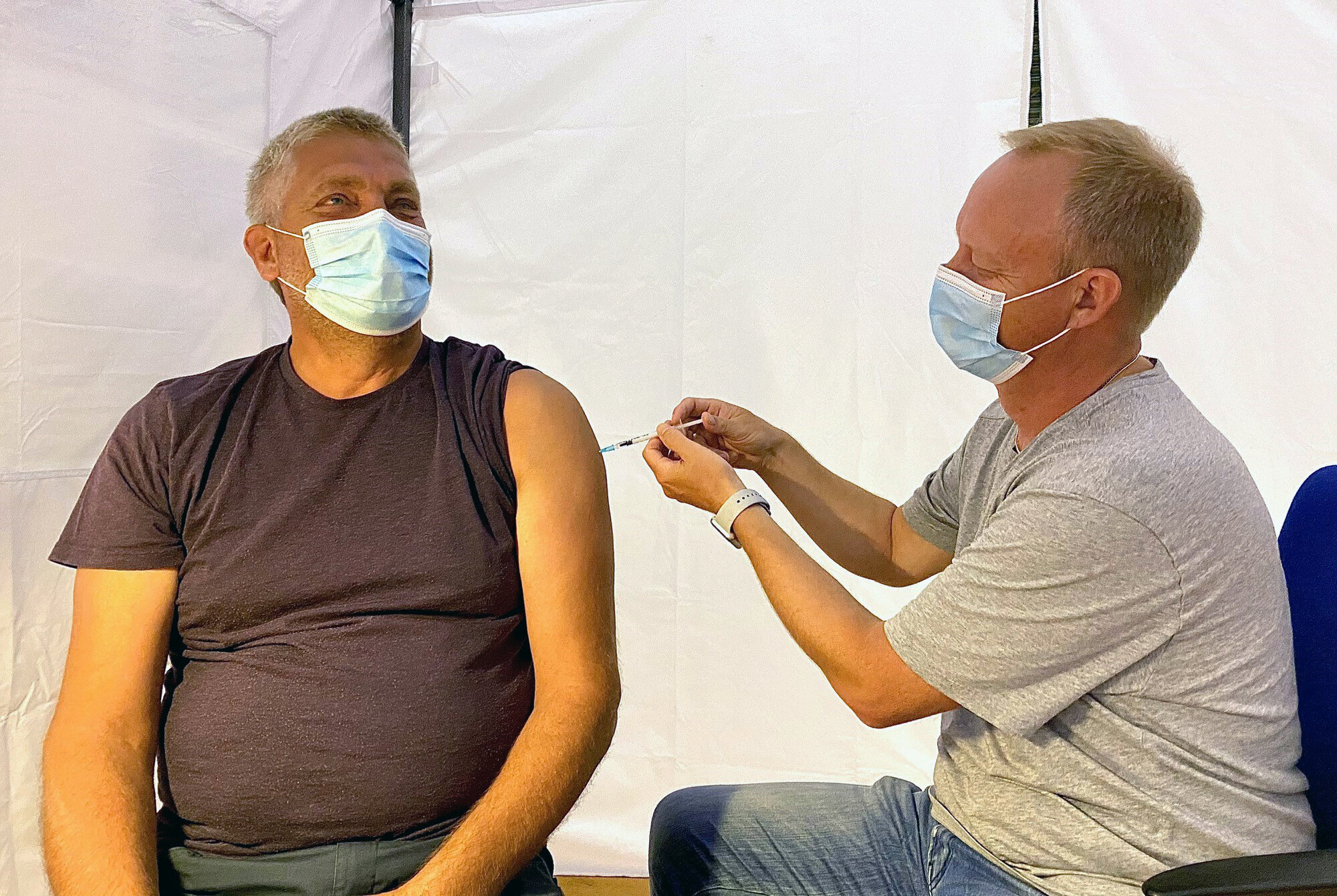 – Sånn! La meg være den første til å gratulere deg med dose nummer to!